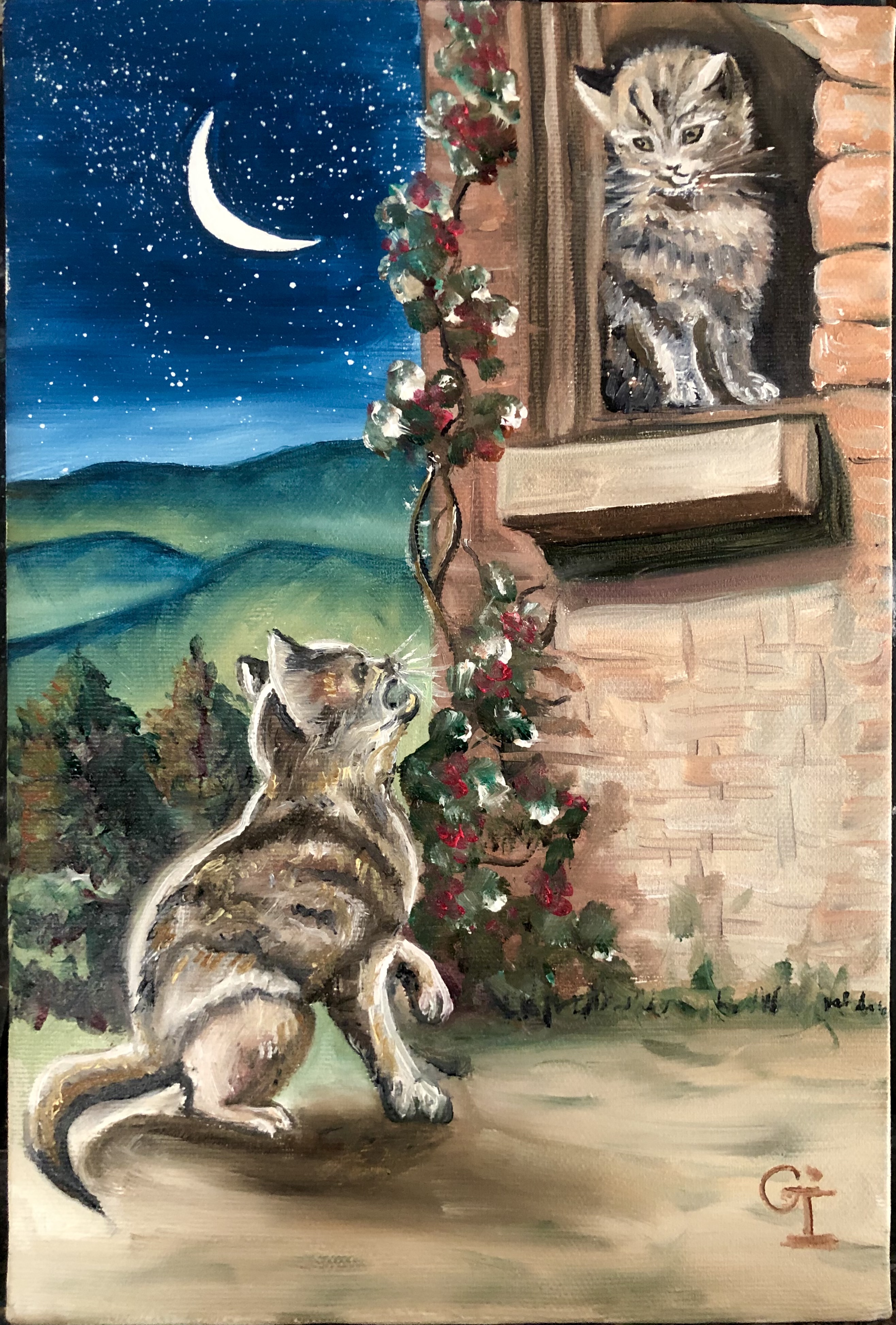 ‘Cat’s serenade’, oil/canvas 30/20 cm