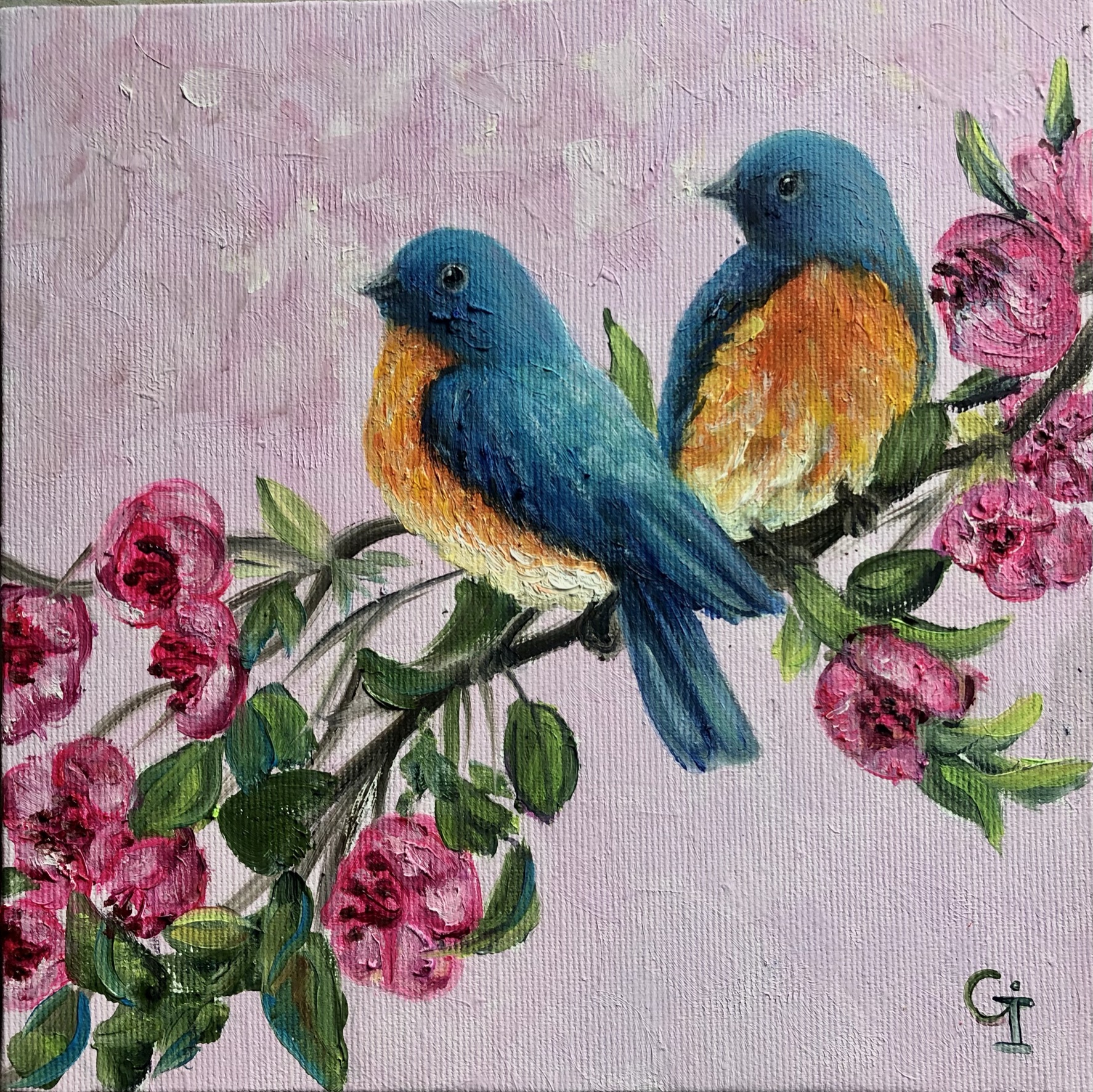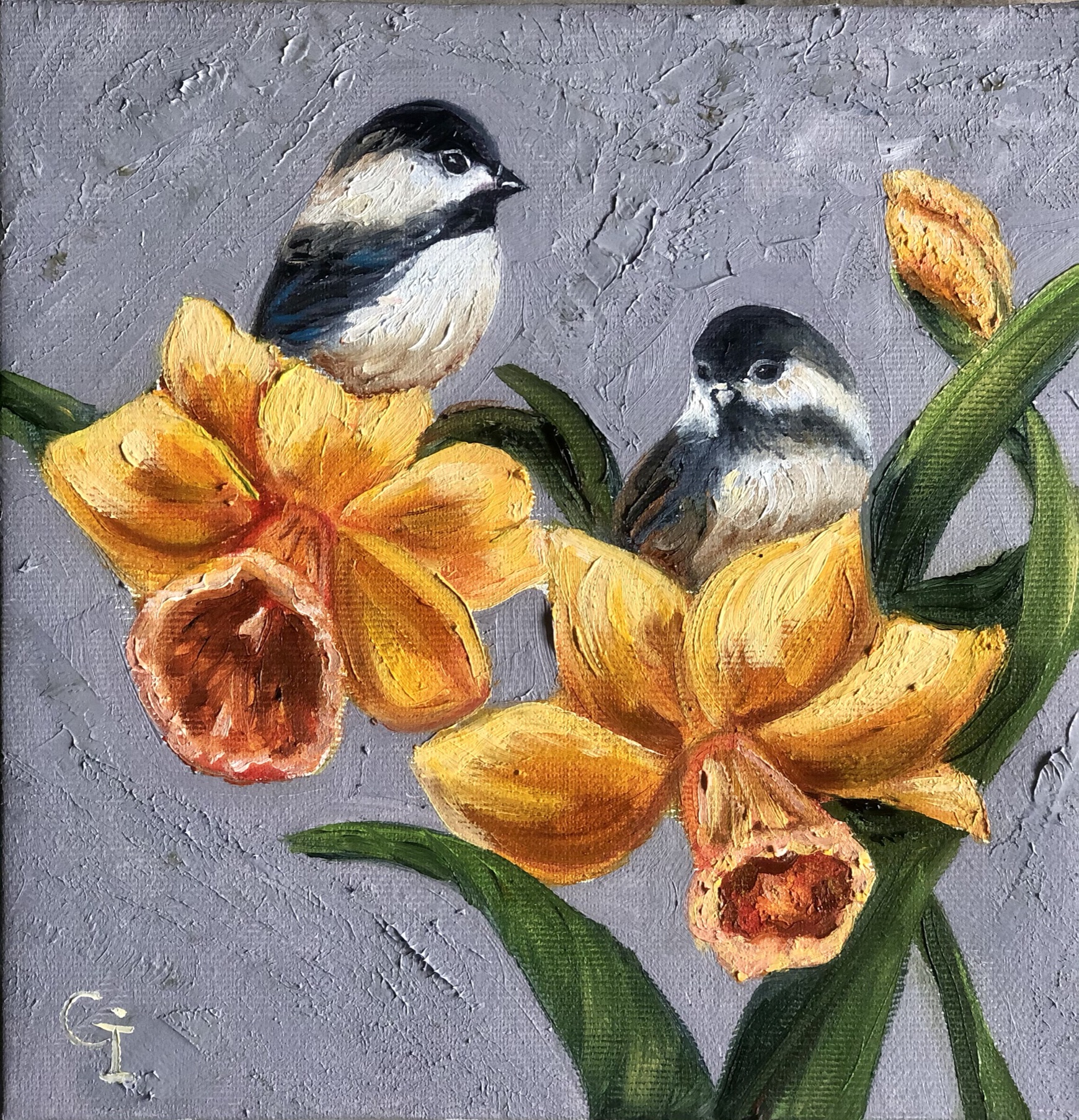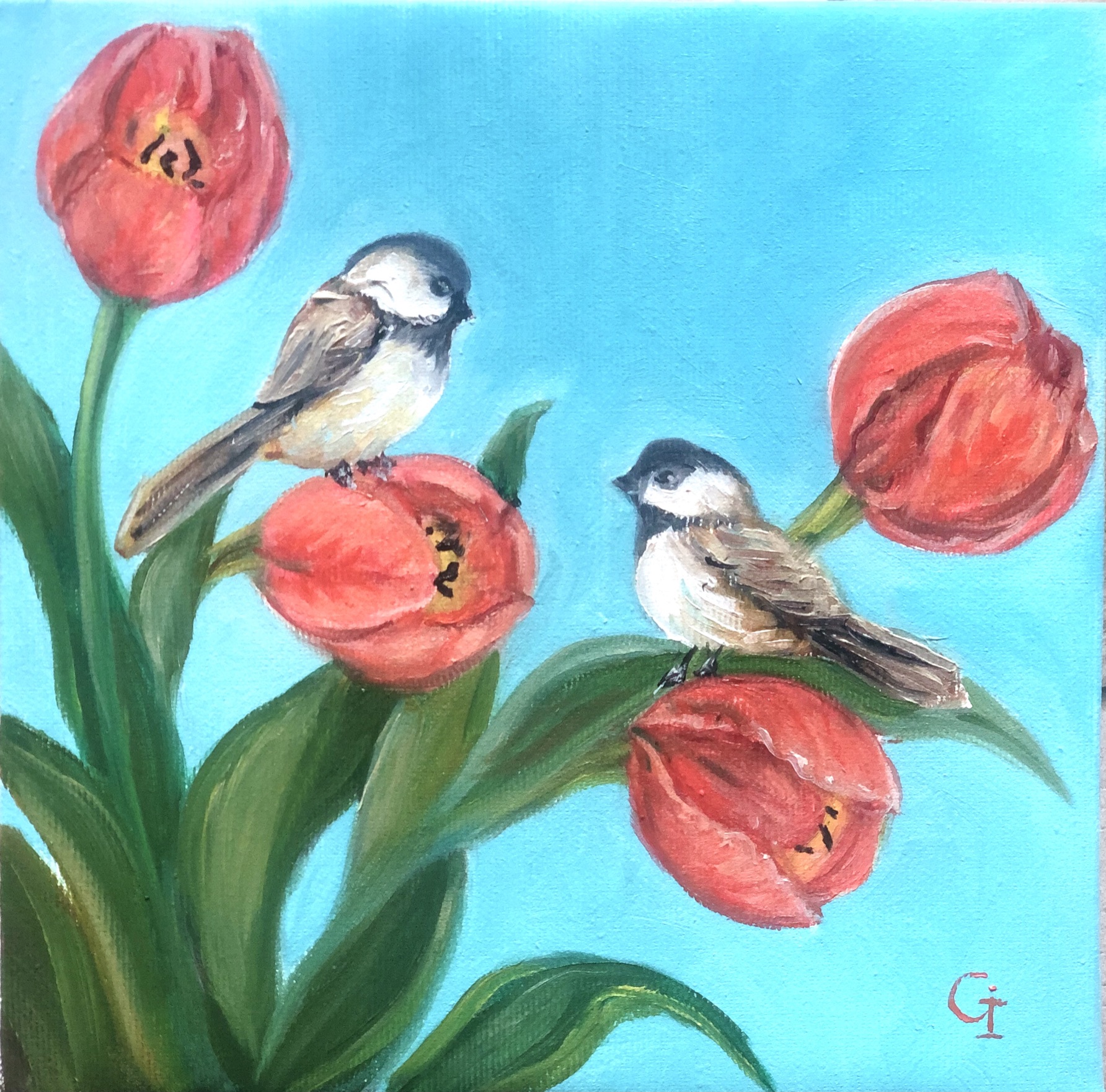 ‘Bird and tulip’ oil/canvas 25/25 cm