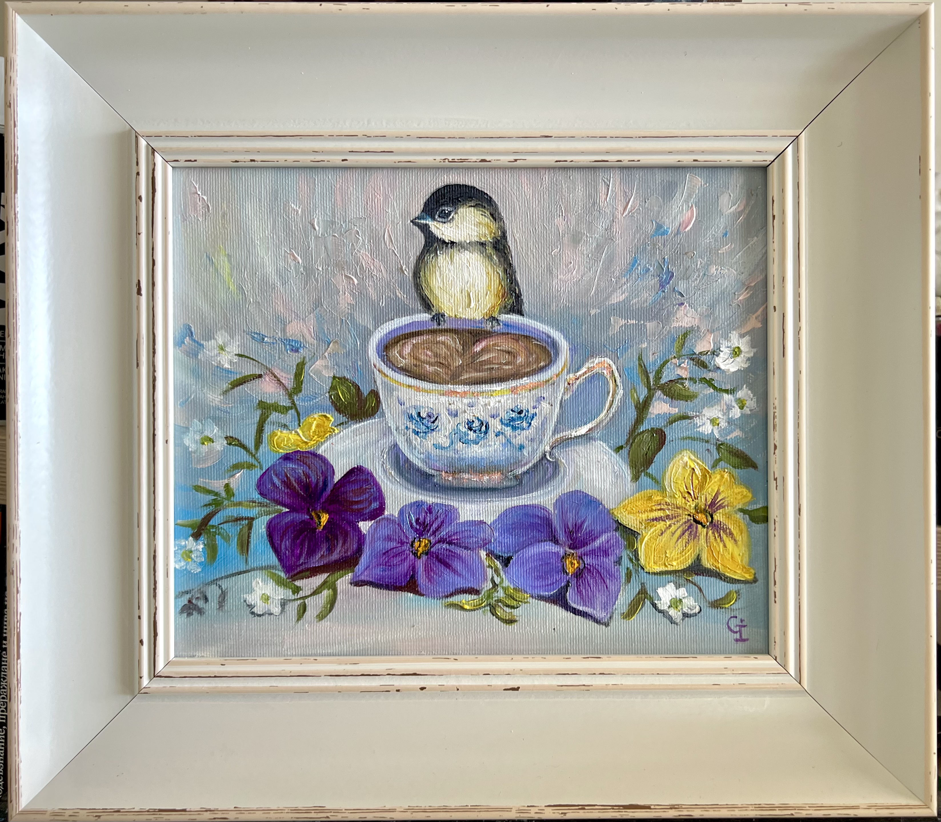 ‘Morning coffee’, oil/canvas 35/30 cm