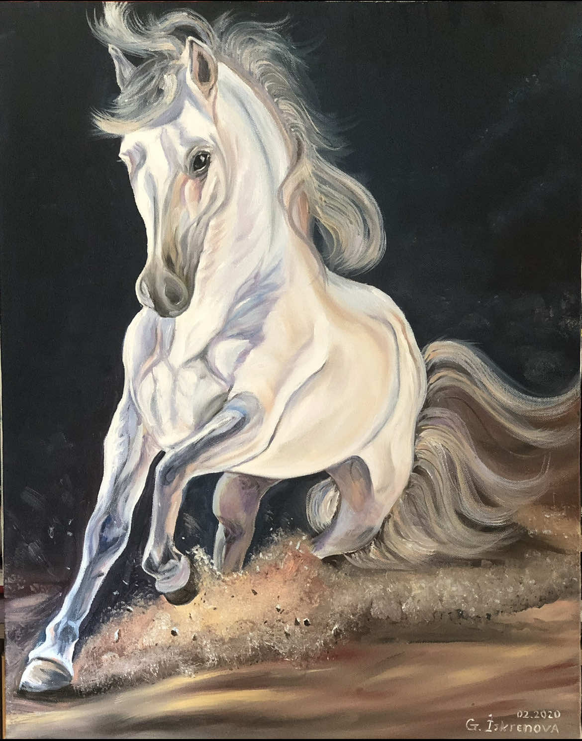 ‘White horse’ oil/canvas 90/70 cm