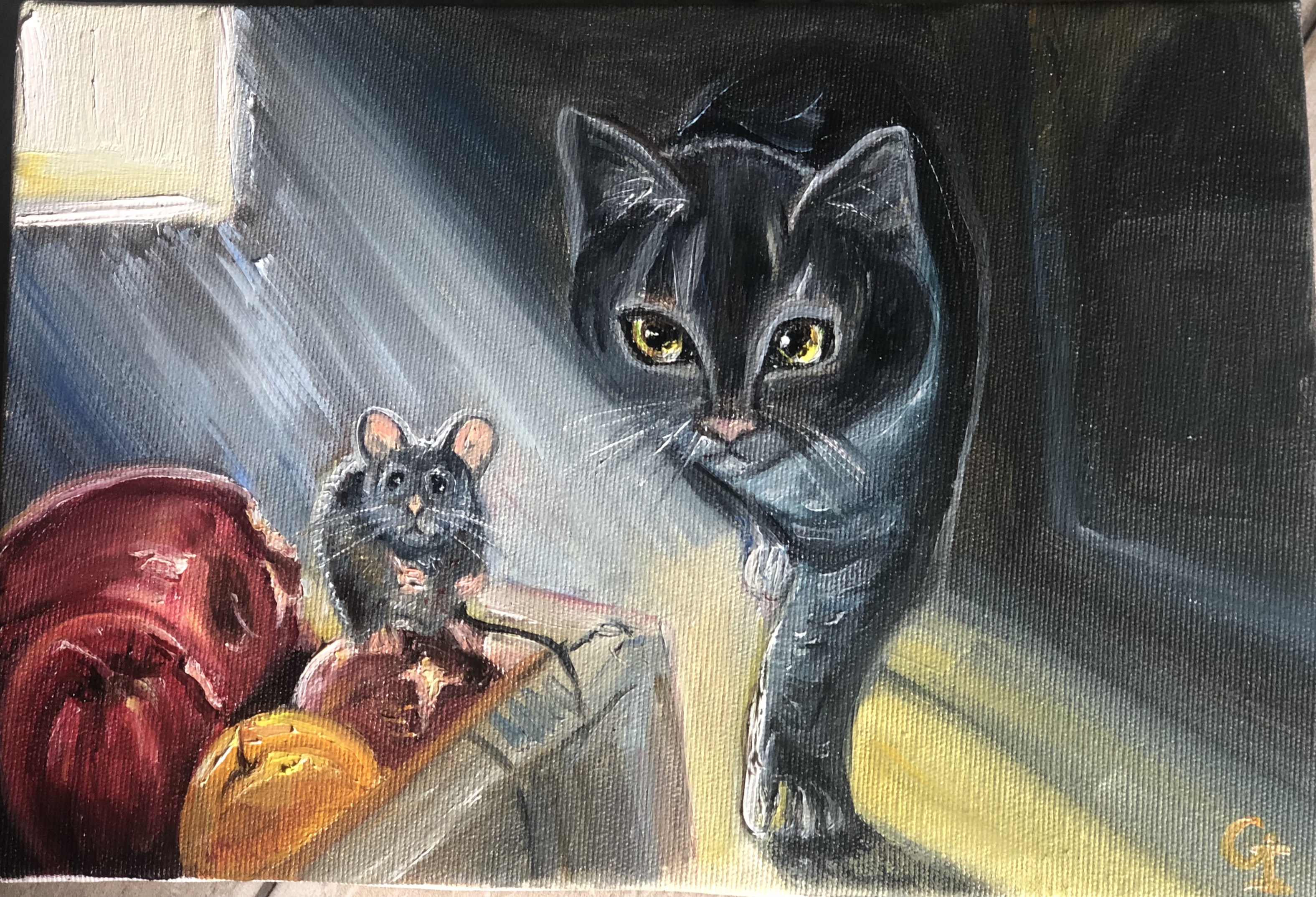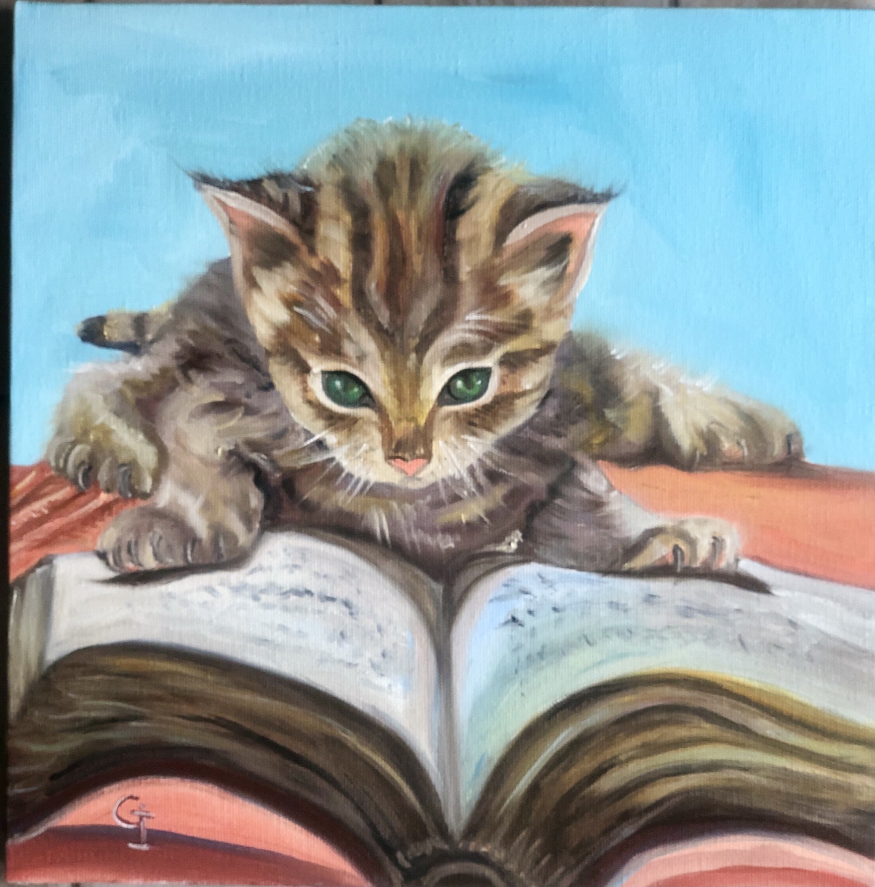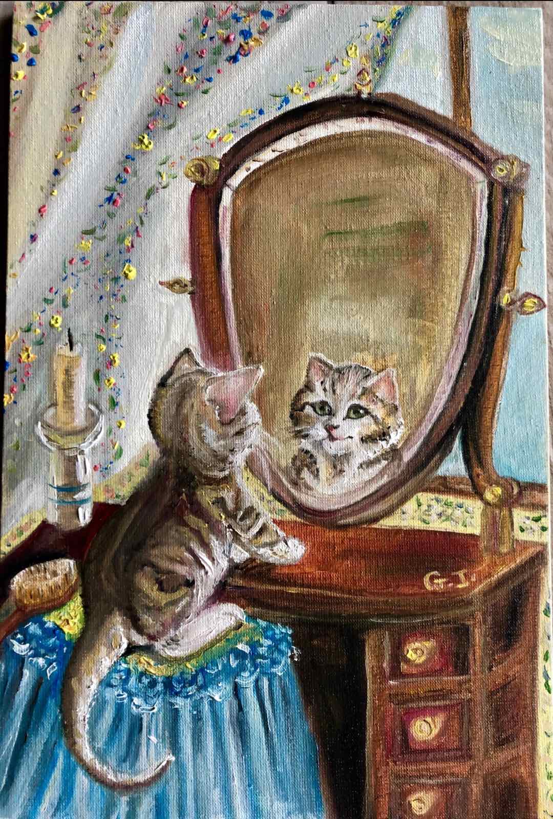 ‘Curious kitten’, oil/canvas 30/30 cm