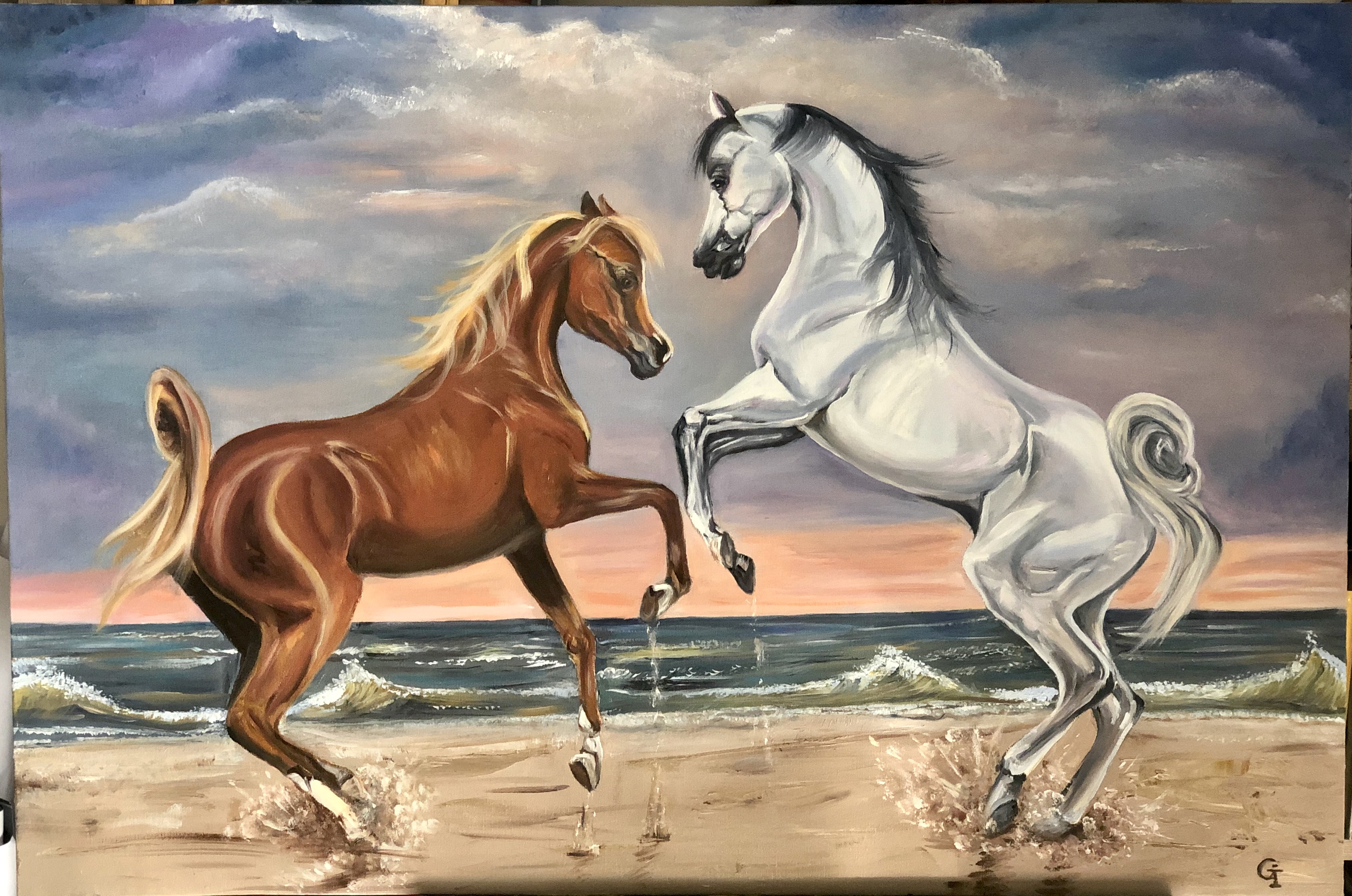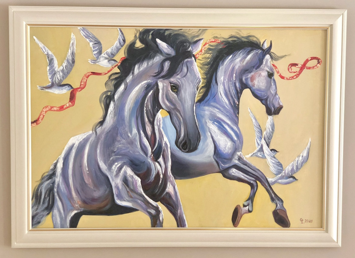 ‘Horses’, oil/canvas 90/70 cm