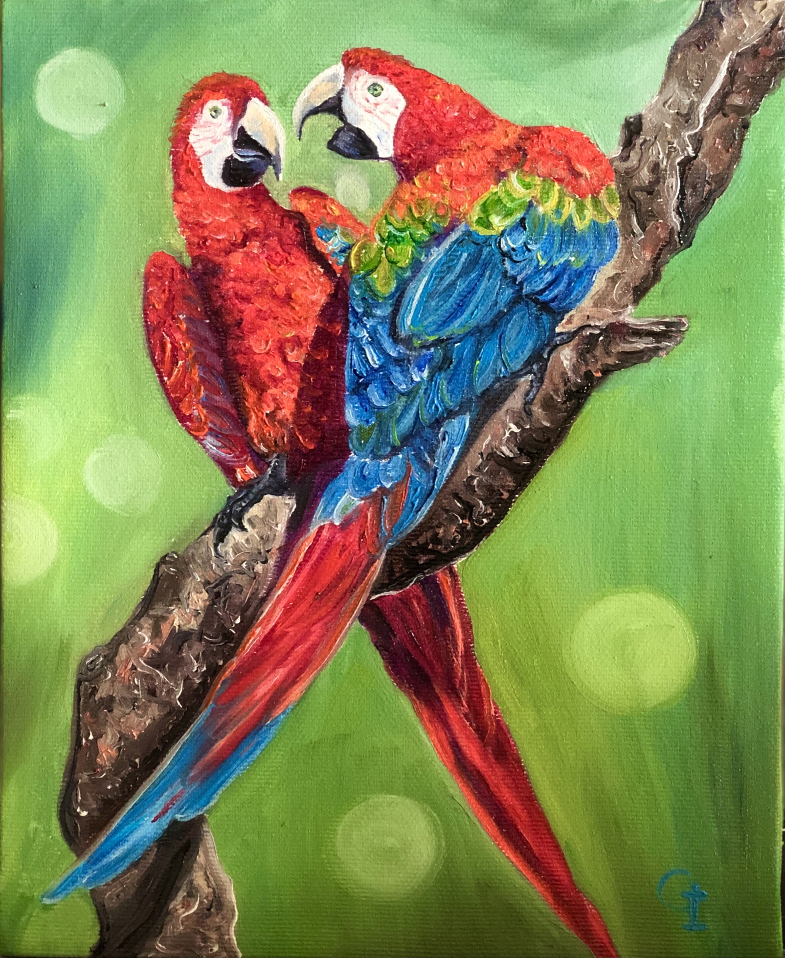 ‘Parrots’, oil/canvas 40/30 cm