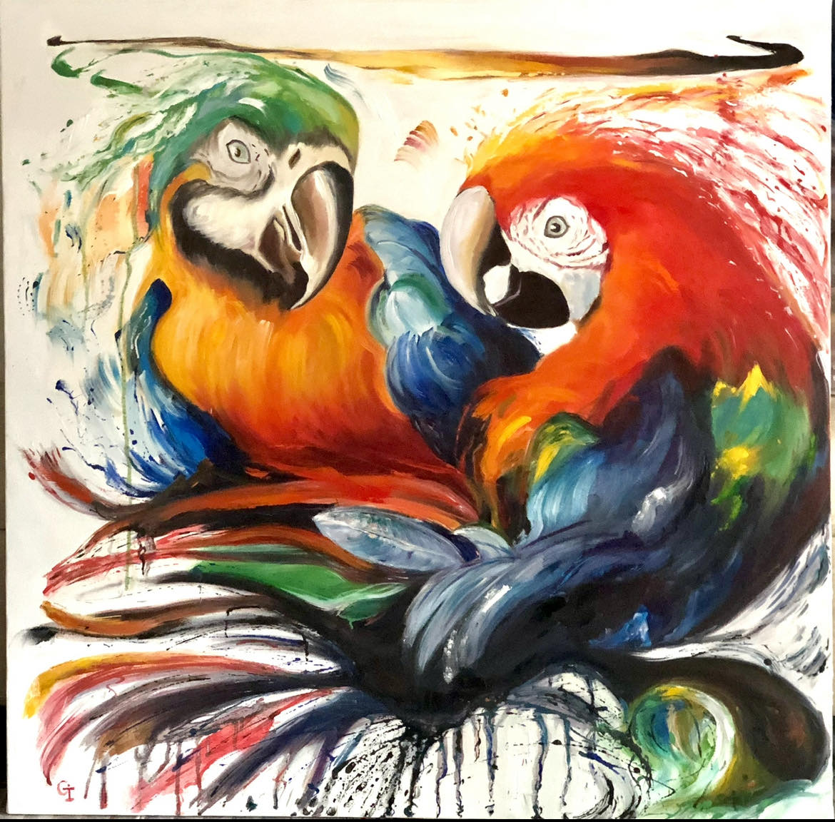 ‘Parrots’, oil/canvas 100/100 cm
