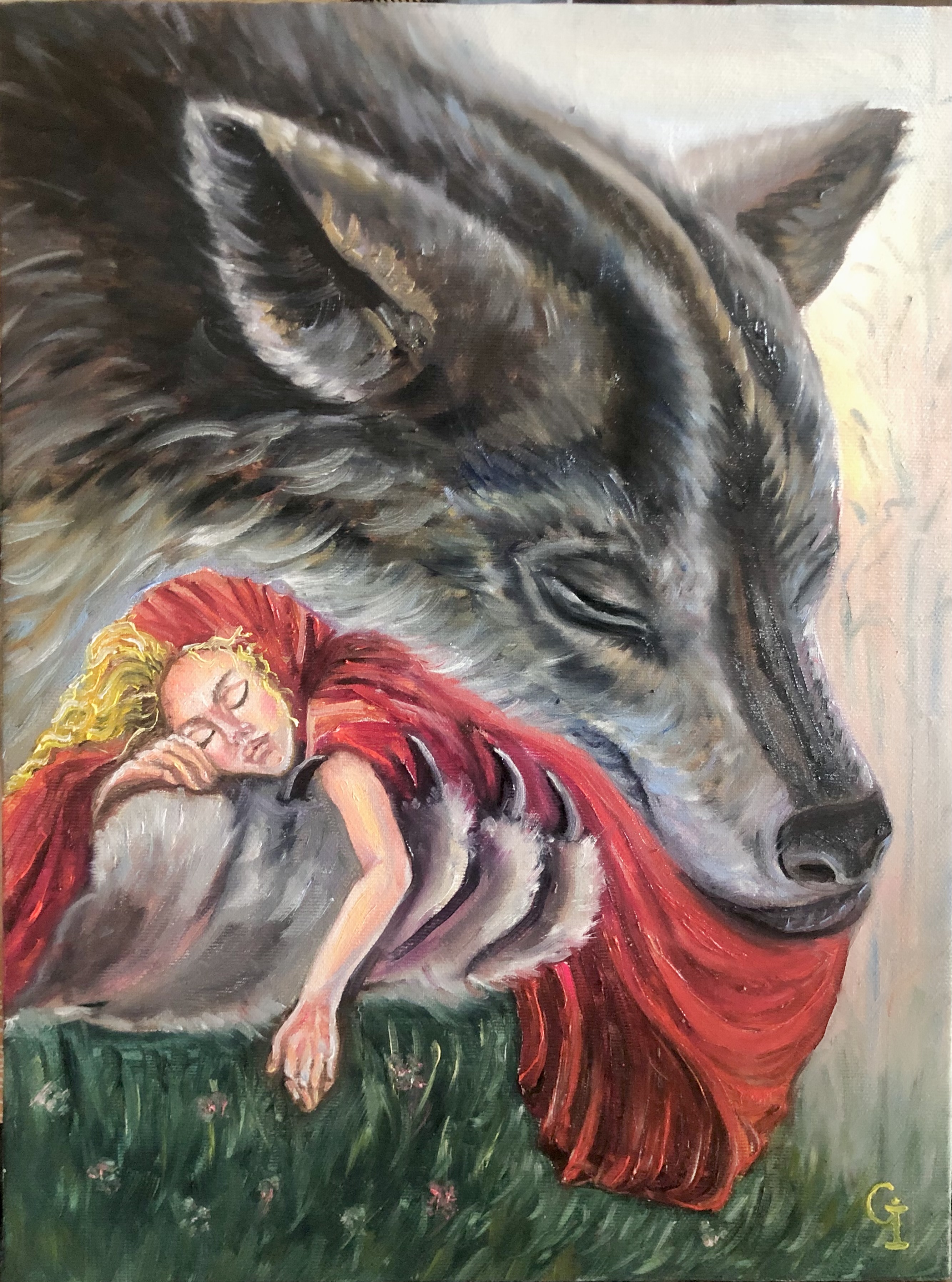 ‘Red riding hood’, oil/canvas 40/30 cm