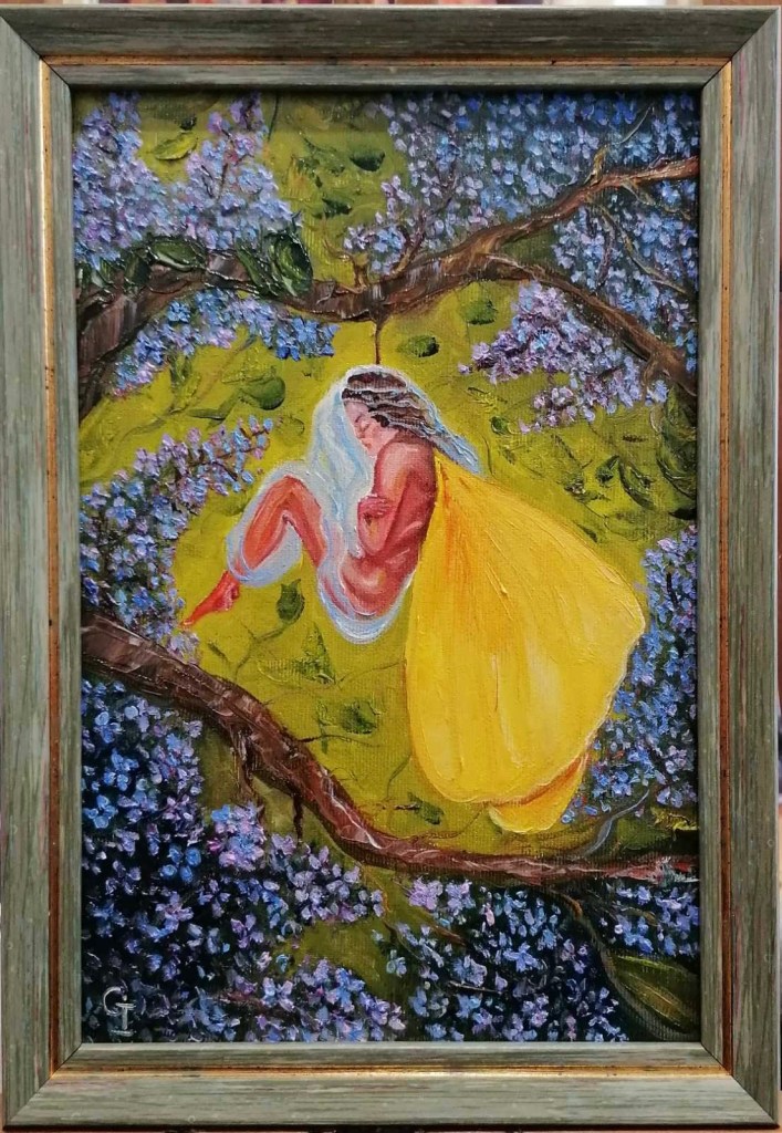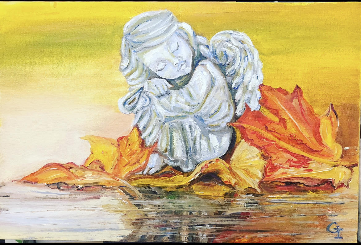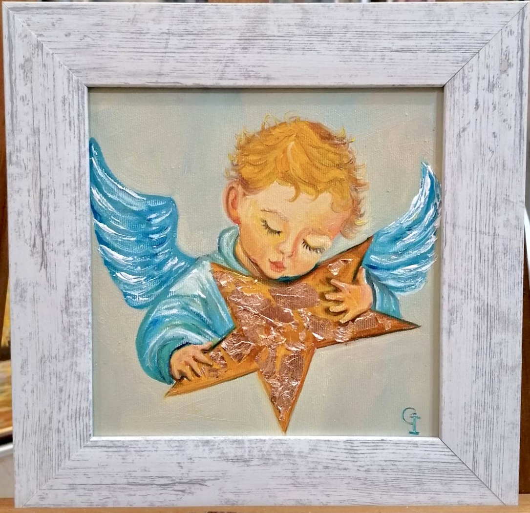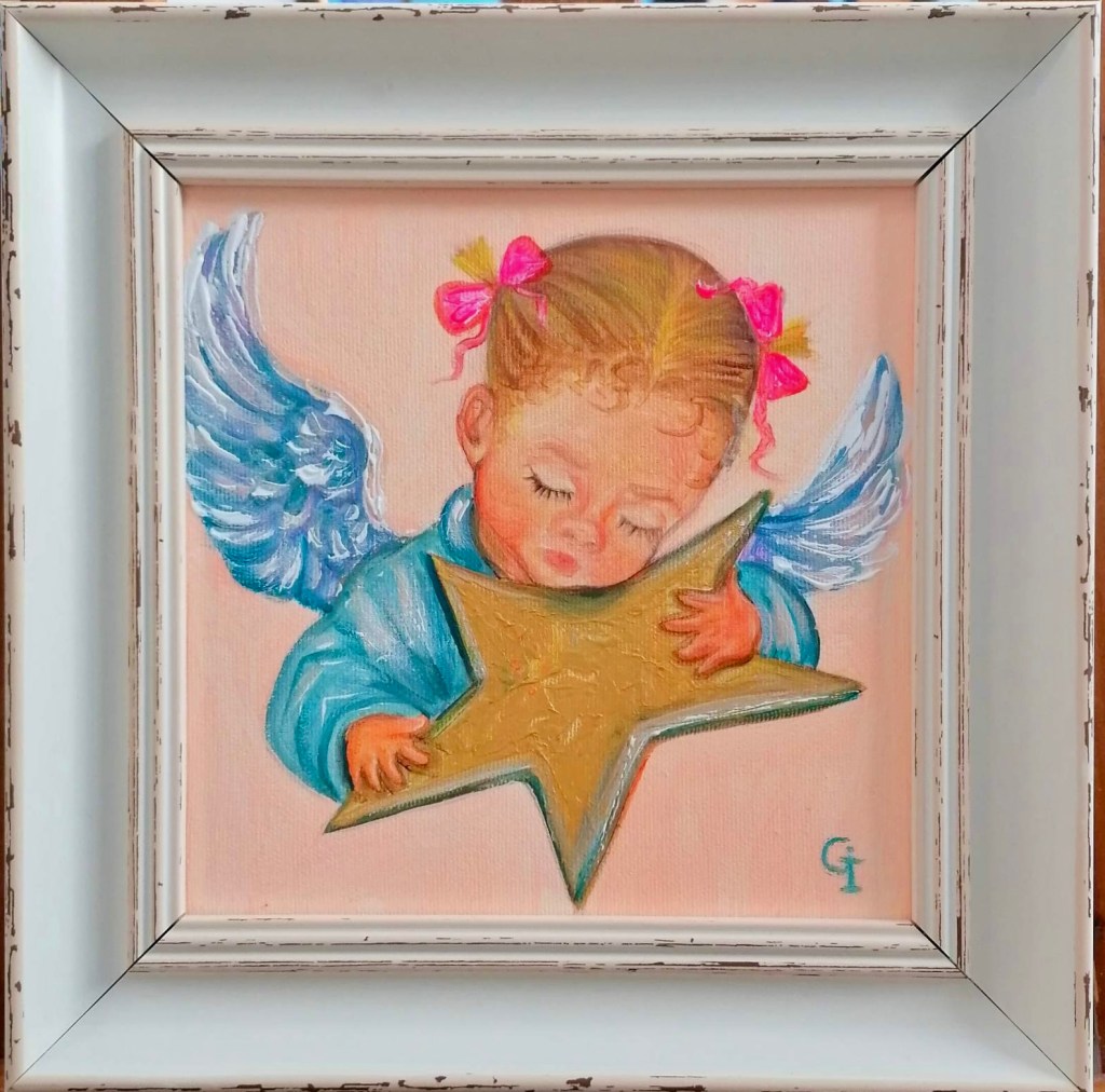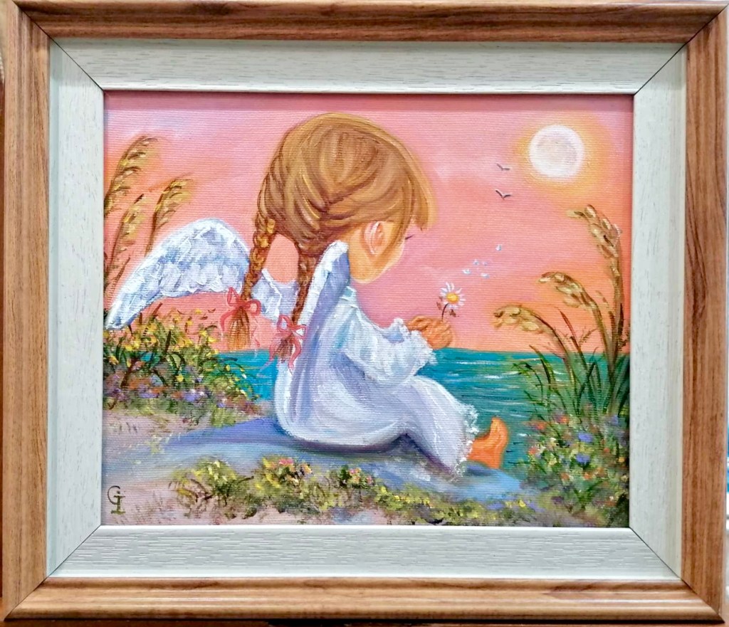 ‘Autumn angel’, part 1, oil/canvas 30/20 cm‘Autumn angel’, part 2, oil/canvas 30/20 cm‘Little prince’, oil/canvas 30/20 cm‘Pure friends’, oil/canvas 30/20 cm‘Sister and brother’, oil/canvas 30/20 cm‘Red riding hood’, oil/canvas 40/30 cm‘Sisters’, part 1, oil/canvas 40/30 cm‘Sisters’, part 2, oil/canvas 30/27 cm‘Childhood’, part 1, oil/canvas 30/20 cm‘Future sailor’, oil/canvas 25/20 cm‘Childhood’, part 2, oil/canvas 25/20 cm‘An interesting book’ 30/24 cm‘I’m coming’, oil/canvas 40/30 cm‘Angel guest’, part 5, oil/canvas 25/20 cm‘Christmas angel’, part 1, oil/canvas 20/20 cm‘Angel guest’, part 2, oil/canvas 25/20 cm‘Christmas angel’, part 2, oil/canvas 20/20 cm‘Christmas angel’, part 3, oil/canvas 20/20 cm‘Angel guest’, part 4, oil/canvas 25/20 cm‘Christmas angel’, part 4, oil/canvas 20/20 cm‘Angel guest’, part 3, oil/canvas 20/20 cm‘Christmas angel’, part 5, oil/canvas 20/20 cm‘Autumn angel’, part 3, oil/canvas 25/20 cm ‘Fairy’, oil/canvas 30/30 cm‘Angel guest’, part 6, oil/canvas 20/20 cm‘Angel guests’, oil/canvas 30/20 cm‘St. Nicholas day’, oil/canvas 40/30 cm‘Christmas angel’, part 9, oil/canvas 20/20 cm‘Christmas angel’, part 7, oil/canvas 25/20 cm‘Angels with bell’, oil/canvas 25/20 cm‘Christmas angel’, part 6, oil/canvas 25/20 cm‘Donkey with bird’, oil/canvas 20/20 cm‘Christmas angel’, part 8, oil/canvas 20/20 cm‘Valentine’, part 1, oil/canvas 30/20 cm‘Valentine’, part 2, oil/canvas 30/20 cm‘Valentine’, part 3, oil/canvas 30/20 cm‘Angel guest’, part 1, oil/canvas 30/20 cm‘Little ballerina’, oil/canvas 30/20 cm‘Autumn angel’, part 4, oil/canvas 25/20 cm‘Autumn angel’, part 5, oil/canvas 40/30 cm‘Easter’, part 1, oil/canvas 20/20 cm‘Easter’,part 2, oil/canvas 20/20 cm‘Christmas decorator’, oil/canvas 40/30 cm‘Playing at the beach’, oil/canvas 38/26 cm‘At the village’, oil/canvas 38/26 cm‘Dreaming angel’, oil/canvas 40/40 cm‘Childhood’, oil/canvas 28/28 cm‘Guardian angel’, oil/canvas 50/40 cm‘The little prince’, oil/canvas 38/28 cm‘Christmas angel-girl’, part 1, oil/canvas 25/25 cm‘Christmas angel-girl’, part 2, oil/canvas 23/23 cm‘Christmas angel-boy’, oil/canvas 23/23 cm‘Torch’, oil/canvas 30/25 cm‘Kitten with butterfly’, acryl/canvas 30/25 cm‘Lazy bunny’, acryl/ canvas 23/23 cm‘Fishes’, acryl/canvas 23/23 cm‘White puppy’, acryl/canvas 23/23 cm‘Kitten with ladybugs’ acryl/canvas 23/23 cm‘Angel girl in forest’, acryl and oil on canvas 28/23 cm‘Angel boy in forest’, acryl and oil on canvas 28/23 cm‘Summer angel girl’, oil on canvas 31/27 cm ‘Summer angel boy’, oil on canvas 31/27 cm ‘Sacred messenger’, acryl on canvas 30/25 cm‘Angel girl with star’, acryl on canvas 30/30 cm‘A child’s’ prayer’, acryl on canvas 29/29 cm ‘St.Nicola’s day’, acryle and oil on canvas 54/44 cm‘Voriacious bunny’, acryl on canvas 33/28 cm’Litted bunny’, phosphorescented night glow acryl color on canvas 37/27 cm‘Christmas present’, lil on canvas 30/30 cm‘Little ballerina’, oil on canvas 40/30 cm‘Prayer’, oil on canvas 40/40 cm‘The Messiah’, oil on canvas 54/44 cm‘Mommy like’, oil on canvas 39/39 cm‘Little ballerina’, acryl and oil on canvas 30/25 cm‘Lioness’, acryl and oil on canvas 40/40 cm‘Awakening’, oil on canvas 32/22 cm‘Scorpio’, acryl on canvas 32/22 cm‘Sacred helper’, acryl and oil on canvas 49/49 cm‘Goddess Lakshmi लक्ष्मी’ – acryl and oil on canvas 39/29 cm. The concentration of the sacred feminine principle. She is the goddess of light, abundance, wisdom and happiness, as well as luck, beauty and fertility. Lakshmi appeared from the sea foam of the ocean on the sacred lotus flower. She has four hands. With one hand she gives – she is generous with giving, and with the other she blesses people. In the other two hands she has pink lotuses. Pink is the color of love. The lotus flower symbolizes purity and wealth, also spiritual and material development. A woman must respect her purity, her chastity, inside and outside herself. Women are queens in their home and they really need to realize their greatness, with their power they can save the world. She is an artist and creator. She can create beauty around her, in her household, in her family, in society, everywhere. Your strength is that you can give Love! And by giving love, you will find that you are always enriching yourself. Lakshmi is the goddess of love, beauty and prosperity. And there is even such an opinion that when a person begins to become rich and prosperous, they say that Lakshmi has settled in his house, but if, on the contrary, there are clear failures, then Lakshmi has left him.‘Green Tara (तारा)’, acrylic and oil on canvas 39/29 cm; Green Tara is considered the Bodhisattva or Buddha of compassion and action, a protector who comes to our aid to free us from physical, emotional and spiritual suffering. Tara has 21 basic forms, each with a different color and spiritual attribute. Especially popular among Tibetans – Green Tara, mother of enlightenment. Goddess of Protection from Fears and Abundance. Her mantra is: om tare tuttare ture soha. Each mantra is a “sound, syllable, word, or group of words that is considered capable of “creating transformation. If your inner self is filled with negative thoughts, then chanting the green tara mantra will replace it with calmness, fear is replaced with courage, and self-centeredness develops into a compassionate view of all beings. The vibrations of the mantra connect us to higher states of consciousness, leading us to discover deep truths about ourselves and the universe. In the painting, she is depicted “in a pose of lightness and readiness for action. While her left leg is folded in a contemplative position, her right leg is extended, ready to