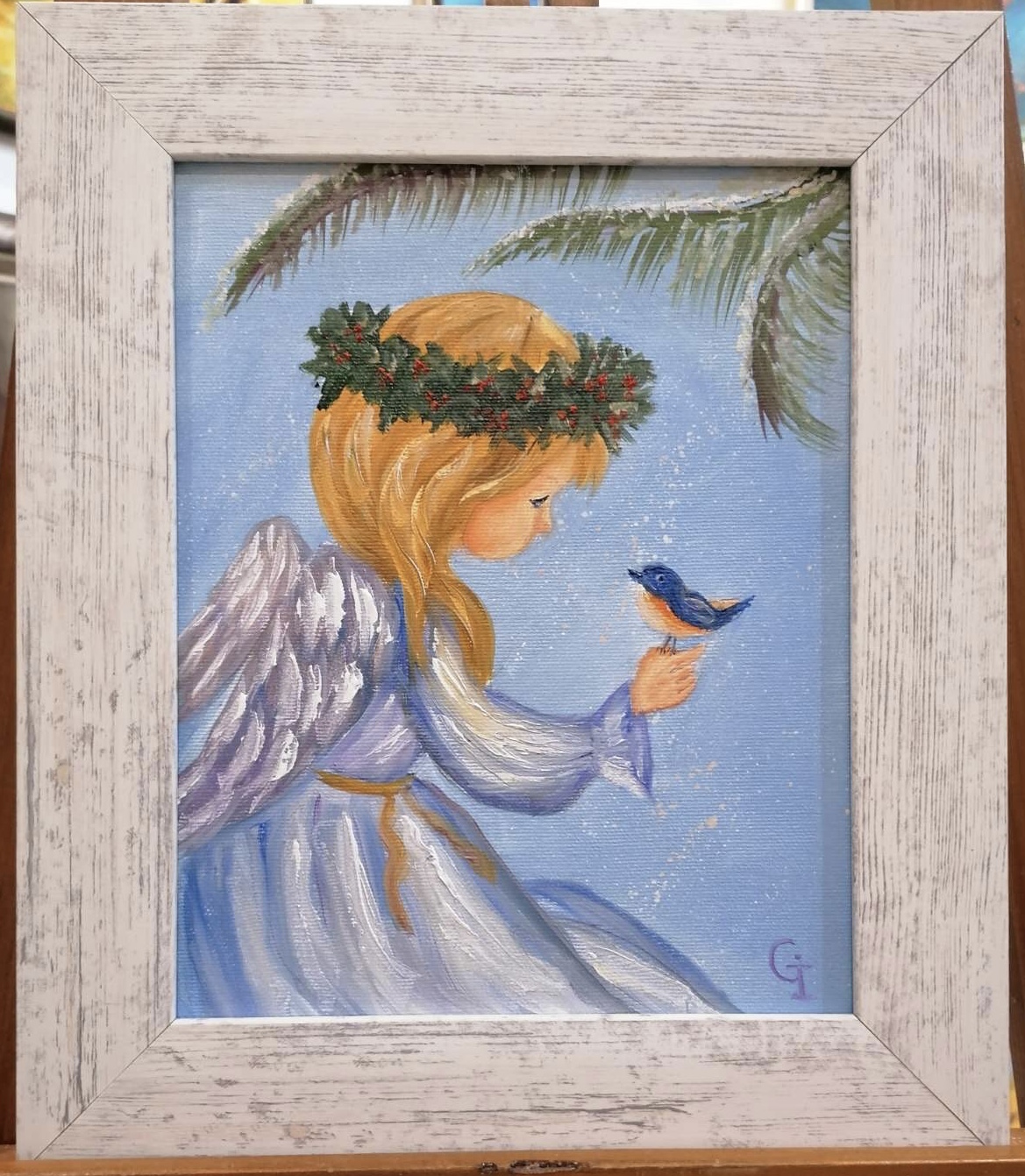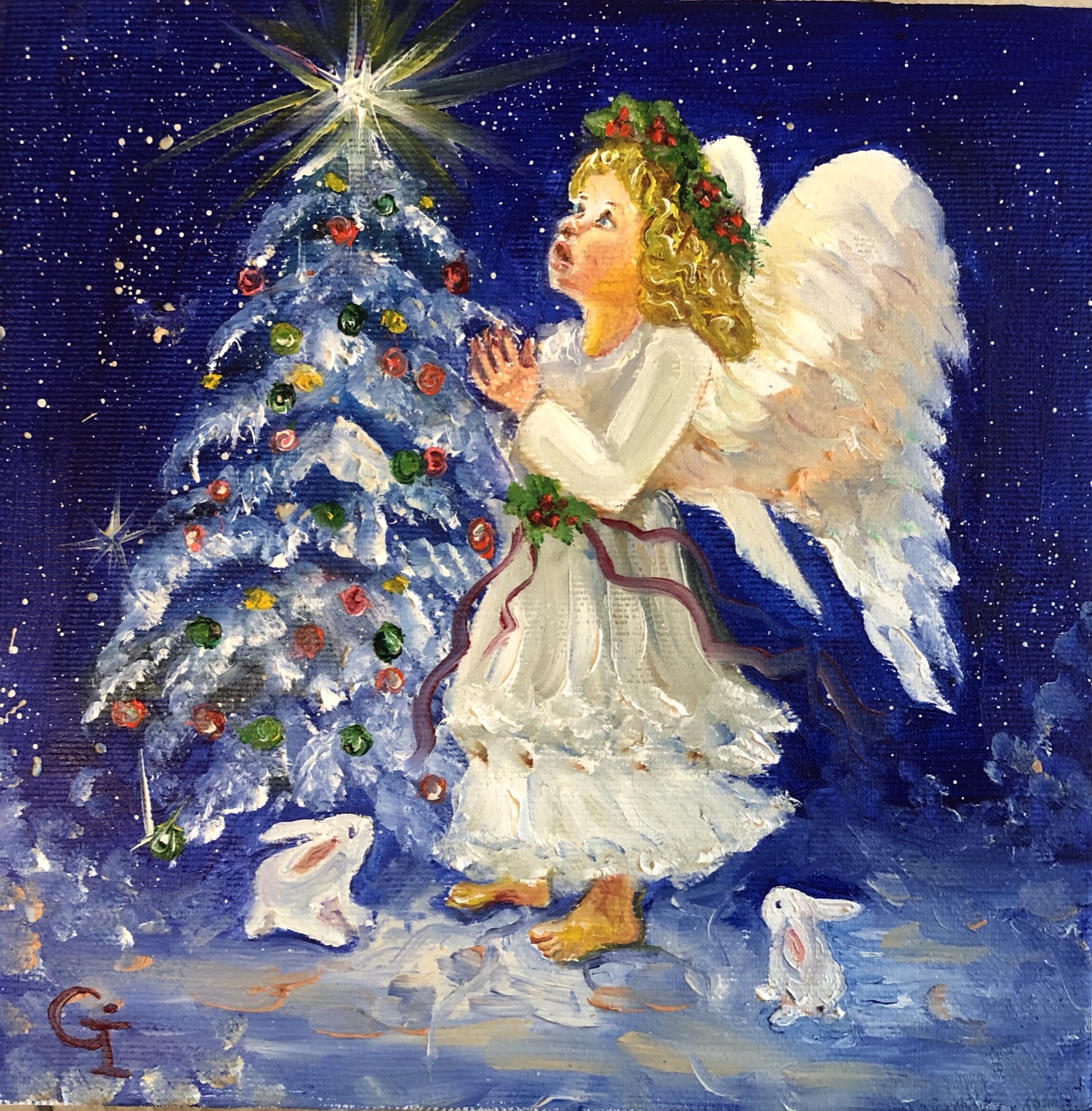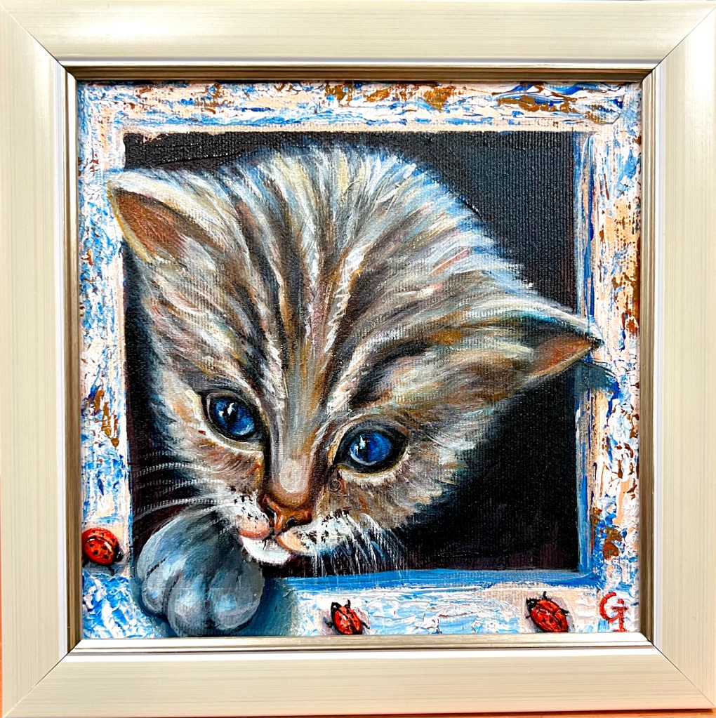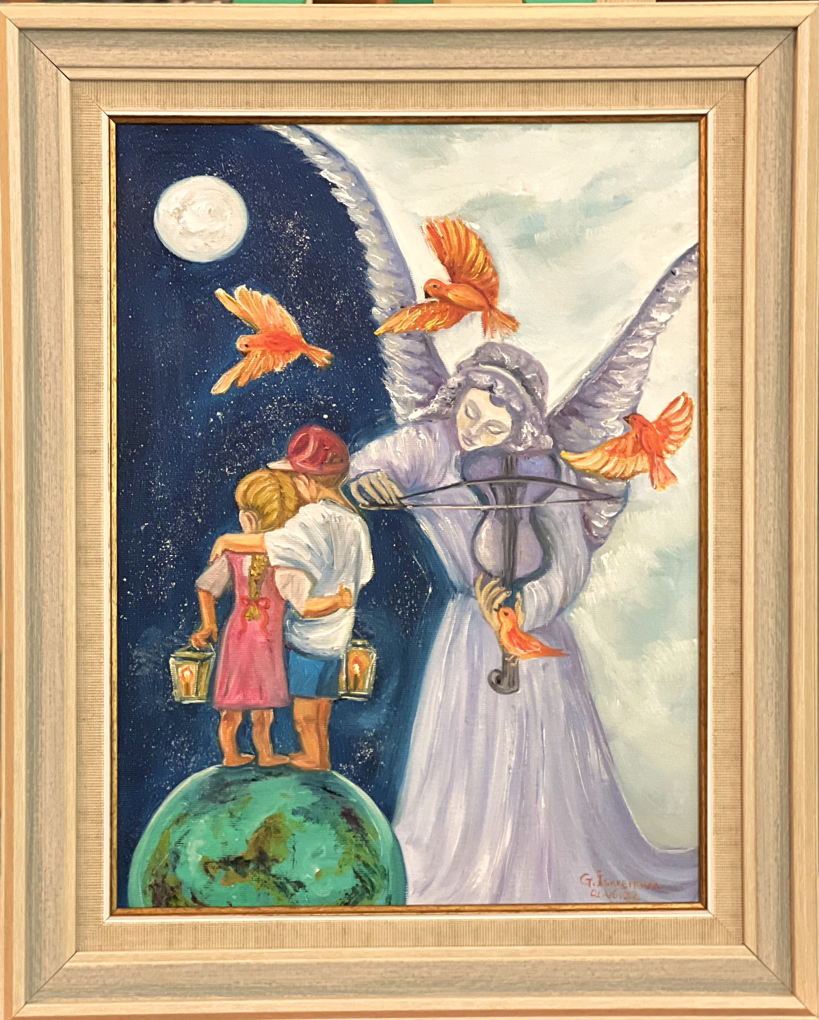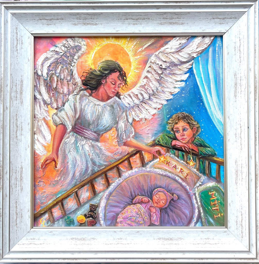 ‘Autumn angel’, part 1, oil/canvas 30/20 cm‘Autumn angel’, part 2, oil/canvas 30/20 cm‘Little prince’, oil/canvas 30/20 cm‘Pure friends’, oil/canvas 30/20 cm‘Sister and brother’, oil/canvas 30/20 cm‘Red riding hood’, oil/canvas 40/30 cm‘Sisters’, part 1, oil/canvas 40/30 cm‘Sisters’, part 2, oil/canvas 30/27 cm‘Childhood’, part 1, oil/canvas 30/20 cm‘Future sailor’, oil/canvas 25/20 cm‘Childhood’, part 2, oil/canvas 25/20 cm‘An interesting book’ 30/24 cm‘I’m coming’, oil/canvas 40/30 cm‘Angel guest’, part 5, oil/canvas 25/20 cm‘Christmas angel’, part 1, oil/canvas 20/20 cm‘Angel guest’, part 2, oil/canvas 25/20 cm‘Christmas angel’, part 2, oil/canvas 20/20 cm‘Christmas angel’, part 3, oil/canvas 20/20 cm‘Angel guest’, part 4, oil/canvas 25/20 cm‘Christmas angel’, part 4, oil/canvas 20/20 cm‘Angel guest’, part 3, oil/canvas 20/20 cm‘Christmas angel’, part 5, oil/canvas 20/20 cm‘Autumn angel’, part 3, oil/canvas 25/20 cm ‘Fairy’, oil/canvas 30/30 cm‘Angel guest’, part 6, oil/canvas 20/20 cm‘Angel guests’, oil/canvas 30/20 cm‘St. Nicholas day’, oil/canvas 40/30 cm‘Christmas angel’, part 9, oil/canvas 20/20 cm‘Christmas angel’, part 7, oil/canvas 25/20 cm‘Angels with bell’, oil/canvas 25/20 cm‘Christmas angel’, part 6, oil/canvas 25/20 cm‘Donkey with bird’, oil/canvas 20/20 cm‘Christmas angel’, part 8, oil/canvas 20/20 cm‘Valentine’, part 1, oil/canvas 30/20 cm‘Valentine’, part 2, oil/canvas 30/20 cm‘Valentine’, part 3, oil/canvas 30/20 cm‘Angel guest’, part 1, oil/canvas 30/20 cm‘Little ballerina’, oil/canvas 30/20 cm‘Autumn angel’, part 4, oil/canvas 25/20 cm‘Autumn angel’, part 5, oil/canvas 40/30 cm‘Easter’, part 1, oil/canvas 20/20 cm‘Easter’,part 2, oil/canvas 20/20 cm‘Christmas decorator’, oil/canvas 40/30 cm‘Playing at the beach’, oil/canvas 38/26 cm‘At the village’, oil/canvas 38/26 cm‘Dreaming angel’, oil/canvas 40/40 cm‘Childhood’, oil/canvas 28/28 cm‘Guardian angel’, oil/canvas 50/40 cm‘The little prince’, oil/canvas 38/28 cm‘Christmas angel-girl’, part 1, oil/canvas 25/25 cm‘Christmas angel-girl’, part 2, oil/canvas 23/23 cm‘Christmas angel-boy’, oil/canvas 23/23 cm‘Torch’, oil/canvas 30/25 cm‘Kitten with butterfly’, acryl/canvas 30/25 cm‘Lazy bunny’, acryl/ canvas 23/23 cm‘Fishes’, acryl/canvas 23/23 cm‘White puppy’, acryl/canvas 23/23 cm‘Kitten with ladybugs’ acryl/canvas 23/23 cm‘Angel girl in forest’, acryl and oil on canvas 28/23 cm‘Angel boy in forest’, acryl and oil on canvas 28/23 cm‘Summer angel girl’, oil on canvas 31/27 cm ‘Summer angel boy’, oil on canvas 31/27 cm ‘Sacred messenger’, acryl on canvas 30/25 cm‘Angel girl with star’, acryl on canvas 30/30 cm‘A child’s’ prayer’, acryl on canvas 29/29 cm ‘St.Nicola’s day’, acryle and oil on canvas 54/44 cm‘Voriacious bunny’, acryl on canvas 33/28 cm’Litted bunny’, phosphorescented night glow acryl color on canvas 37/27 cm‘Christmas present’, lil on canvas 30/30 cm‘Little ballerina’, oil on canvas 40/30 cm‘Prayer’, oil on canvas 40/40 cm‘The Messiah’, oil on canvas 54/44 cm‘Mommy like’, oil on canvas 39/39 cm‘Little ballerina’, acryl and oil on canvas 30/25 cm‘Lioness’, acryl and oil on canvas 40/40 cm‘Awakening’, oil on canvas 32/22 cm‘Scorpio’, acryl on canvas 32/22 cm‘Sacred helper’, acryl and oil on canvas 49/49 cm‘Goddess Lakshmi लक्ष्मी’ – acryl and oil on canvas 39/29 cm. The concentration of the sacred feminine principle. She is the goddess of light, abundance, wisdom and happiness, as well as luck, beauty and fertility. Lakshmi appeared from the sea foam of the ocean on the sacred lotus flower. She has four hands. With one hand she gives – she is generous with giving, and with the other she blesses people. In the other two hands she has pink lotuses. Pink is the color of love. The lotus flower symbolizes purity and wealth, also spiritual and material development. A woman must respect her purity, her chastity, inside and outside herself. Women are queens in their home and they really need to realize their greatness, with their power they can save the world. She is an artist and creator. She can create beauty around her, in her household, in her family, in society, everywhere. Your strength is that you can give Love! And by giving love, you will find that you are always enriching yourself. Lakshmi is the goddess of love, beauty and prosperity. And there is even such an opinion that when a person begins to become rich and prosperous, they say that Lakshmi has settled in his house, but if, on the contrary, there are clear failures, then Lakshmi has left him.‘Green Tara (तारा)’, acrylic and oil on canvas 39/29 cm; Green Tara is considered the Bodhisattva or Buddha of compassion and action, a protector who comes to our aid to free us from physical, emotional and spiritual suffering. Tara has 21 basic forms, each with a different color and spiritual attribute. Especially popular among Tibetans – Green Tara, mother of enlightenment. Goddess of Protection from Fears and Abundance. Her mantra is: om tare tuttare ture soha. Each mantra is a “sound, syllable, word, or group of words that is considered capable of “creating transformation. If your inner self is filled with negative thoughts, then chanting the green tara mantra will replace it with calmness, fear is replaced with courage, and self-centeredness develops into a compassionate view of all beings. The vibrations of the mantra connect us to higher states of consciousness, leading us to discover deep truths about ourselves and the universe. In the painting, she is depicted “in a pose of lightness and readiness for action. While her left leg is folded in a contemplative position, her right leg is extended, ready to