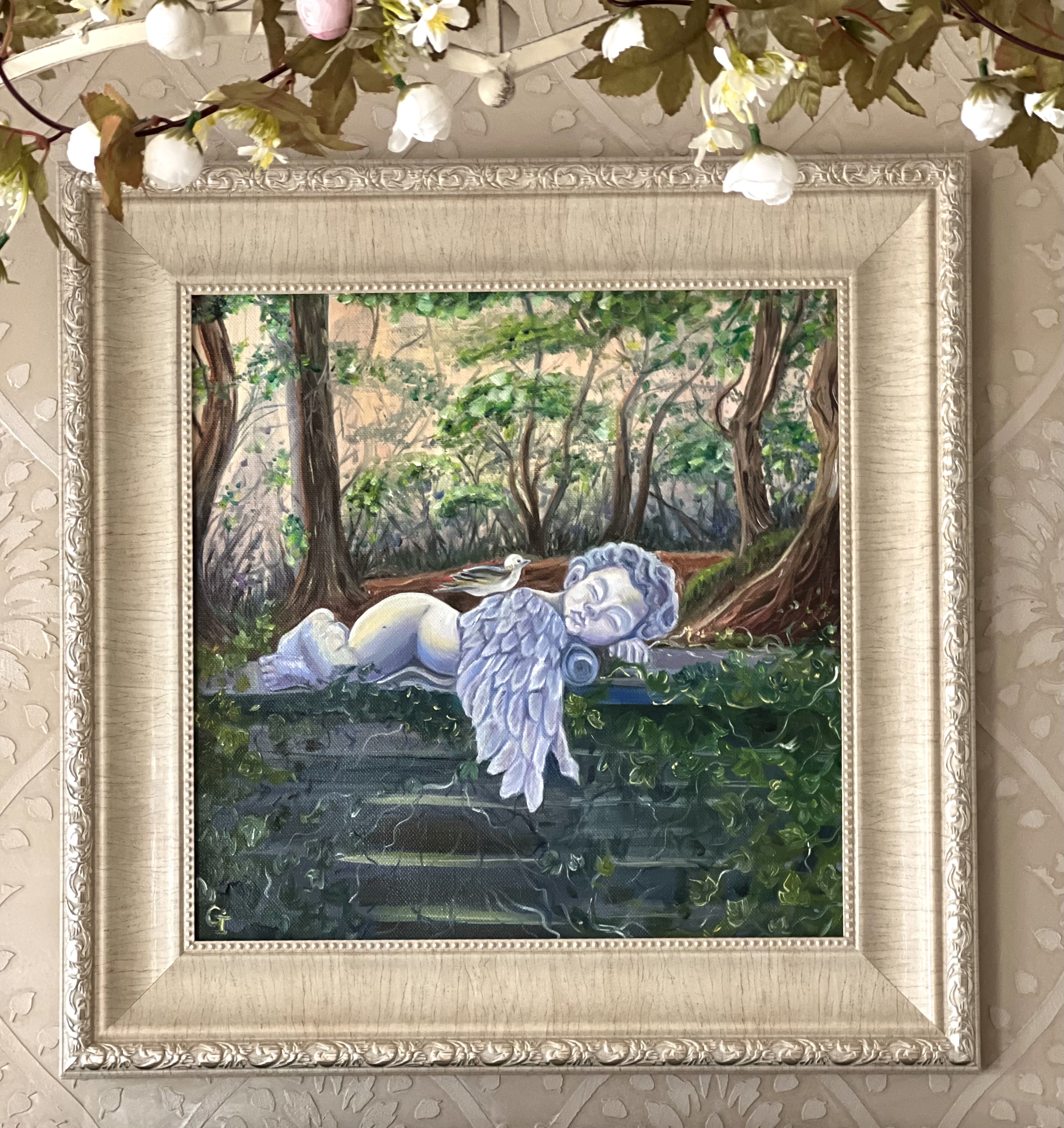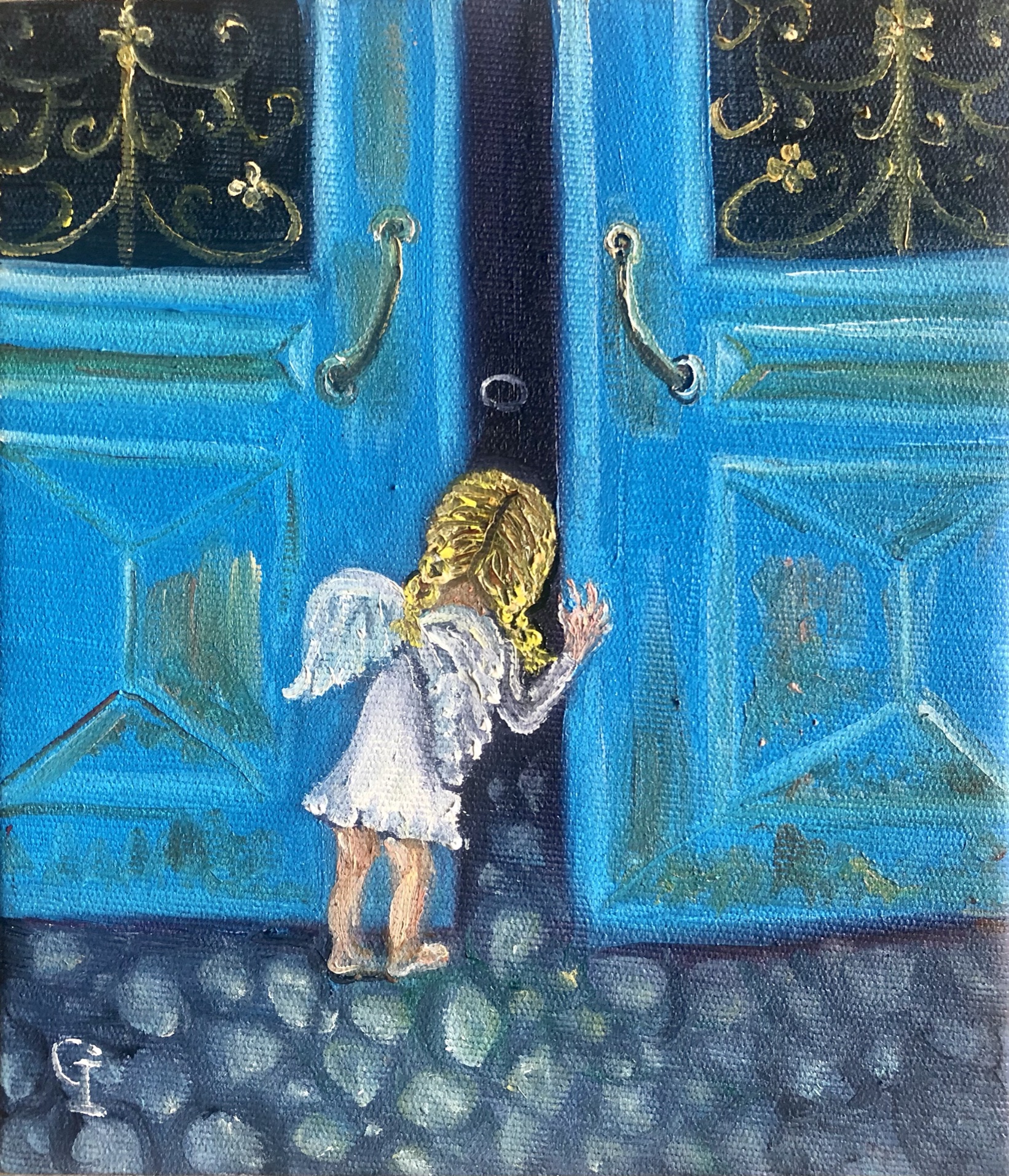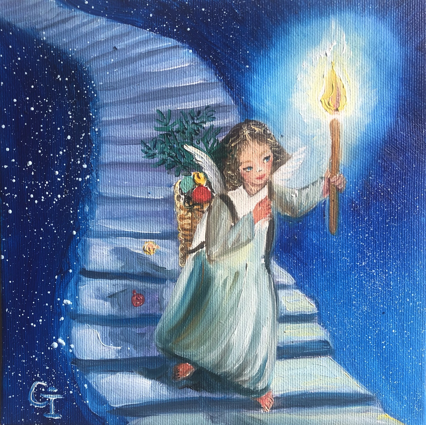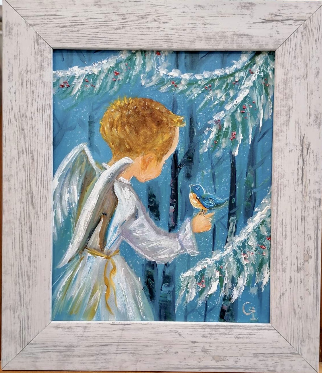 ‘Autumn angel’, part 1, oil/canvas 30/20 cm‘Autumn angel’, part 2, oil/canvas 30/20 cm‘Little prince’, oil/canvas 30/20 cm‘Pure friends’, oil/canvas 30/20 cm‘Sister and brother’, oil/canvas 30/20 cm‘Red riding hood’, oil/canvas 40/30 cm‘Sisters’, part 1, oil/canvas 40/30 cm‘Sisters’, part 2, oil/canvas 30/27 cm‘Childhood’, part 1, oil/canvas 30/20 cm‘Future sailor’, oil/canvas 25/20 cm‘Childhood’, part 2, oil/canvas 25/20 cm‘An interesting book’ 30/24 cm‘I’m coming’, oil/canvas 40/30 cm‘Angel guest’, part 5, oil/canvas 25/20 cm‘Christmas angel’, part 1, oil/canvas 20/20 cm‘Angel guest’, part 2, oil/canvas 25/20 cm‘Christmas angel’, part 2, oil/canvas 20/20 cm‘Christmas angel’, part 3, oil/canvas 20/20 cm‘Angel guest’, part 4, oil/canvas 25/20 cm‘Christmas angel’, part 4, oil/canvas 20/20 cm‘Angel guest’, part 3, oil/canvas 20/20 cm‘Christmas angel’, part 5, oil/canvas 20/20 cm‘Autumn angel’, part 3, oil/canvas 25/20 cm ‘Fairy’, oil/canvas 30/30 cm‘Angel guest’, part 6, oil/canvas 20/20 cm‘Angel guests’, oil/canvas 30/20 cm‘St. Nicholas day’, oil/canvas 40/30 cm‘Christmas angel’, part 9, oil/canvas 20/20 cm‘Christmas angel’, part 7, oil/canvas 25/20 cm‘Angels with bell’, oil/canvas 25/20 cm‘Christmas angel’, part 6, oil/canvas 25/20 cm‘Donkey with bird’, oil/canvas 20/20 cm‘Christmas angel’, part 8, oil/canvas 20/20 cm‘Valentine’, part 1, oil/canvas 30/20 cm‘Valentine’, part 2, oil/canvas 30/20 cm‘Valentine’, part 3, oil/canvas 30/20 cm‘Angel guest’, part 1, oil/canvas 30/20 cm‘Little ballerina’, oil/canvas 30/20 cm‘Autumn angel’, part 4, oil/canvas 25/20 cm‘Autumn angel’, part 5, oil/canvas 40/30 cm‘Easter’, part 1, oil/canvas 20/20 cm‘Easter’,part 2, oil/canvas 20/20 cm‘Christmas decorator’, oil/canvas 40/30 cm‘Playing at the beach’, oil/canvas 38/26 cm‘At the village’, oil/canvas 38/26 cm‘Dreaming angel’, oil/canvas 40/40 cm‘Childhood’, oil/canvas 28/28 cm‘Guardian angel’, oil/canvas 50/40 cm‘The little prince’, oil/canvas 38/28 cm‘Christmas angel-girl’, part 1, oil/canvas 25/25 cm‘Christmas angel-girl’, part 2, oil/canvas 23/23 cm‘Christmas angel-boy’, oil/canvas 23/23 cm‘Torch’, oil/canvas 30/25 cm‘Kitten with butterfly’, acryl/canvas 30/25 cm‘Lazy bunny’, acryl/ canvas 23/23 cm‘Fishes’, acryl/canvas 23/23 cm‘White puppy’, acryl/canvas 23/23 cm‘Kitten with ladybugs’ acryl/canvas 23/23 cm‘Angel girl in forest’, acryl and oil on canvas 28/23 cm‘Angel boy in forest’, acryl and oil on canvas 28/23 cm‘Summer angel girl’, oil on canvas 31/27 cm ‘Summer angel boy’, oil on canvas 31/27 cm ‘Sacred messenger’, acryl on canvas 30/25 cm‘Angel girl with star’, acryl on canvas 30/30 cm‘A child’s’ prayer’, acryl on canvas 29/29 cm ‘St.Nicola’s day’, acryle and oil on canvas 54/44 cm‘Voriacious bunny’, acryl on canvas 33/28 cm’Litted bunny’, phosphorescented night glow acryl color on canvas 37/27 cm‘Christmas present’, lil on canvas 30/30 cm‘Little ballerina’, oil on canvas 40/30 cm‘Prayer’, oil on canvas 40/40 cm‘The Messiah’, oil on canvas 54/44 cm‘Mommy like’, oil on canvas 39/39 cm‘Little ballerina’, acryl and oil on canvas 30/25 cm‘Lioness’, acryl and oil on canvas 40/40 cm‘Awakening’, oil on canvas 32/22 cm‘Scorpio’, acryl on canvas 32/22 cm‘Sacred helper’, acryl and oil on canvas 49/49 cm‘Goddess Lakshmi लक्ष्मी’ – acryl and oil on canvas 39/29 cm. The concentration of the sacred feminine principle. She is the goddess of light, abundance, wisdom and happiness, as well as luck, beauty and fertility. Lakshmi appeared from the sea foam of the ocean on the sacred lotus flower. She has four hands. With one hand she gives – she is generous with giving, and with the other she blesses people. In the other two hands she has pink lotuses. Pink is the color of love. The lotus flower symbolizes purity and wealth, also spiritual and material development. A woman must respect her purity, her chastity, inside and outside herself. Women are queens in their home and they really need to realize their greatness, with their power they can save the world. She is an artist and creator. She can create beauty around her, in her household, in her family, in society, everywhere. Your strength is that you can give Love! And by giving love, you will find that you are always enriching yourself. Lakshmi is the goddess of love, beauty and prosperity. And there is even such an opinion that when a person begins to become rich and prosperous, they say that Lakshmi has settled in his house, but if, on the contrary, there are clear failures, then Lakshmi has left him.‘Green Tara (तारा)’, acrylic and oil on canvas 39/29 cm; Green Tara is considered the Bodhisattva or Buddha of compassion and action, a protector who comes to our aid to free us from physical, emotional and spiritual suffering. Tara has 21 basic forms, each with a different color and spiritual attribute. Especially popular among Tibetans – Green Tara, mother of enlightenment. Goddess of Protection from Fears and Abundance. Her mantra is: om tare tuttare ture soha. Each mantra is a “sound, syllable, word, or group of words that is considered capable of “creating transformation. If your inner self is filled with negative thoughts, then chanting the green tara mantra will replace it with calmness, fear is replaced with courage, and self-centeredness develops into a compassionate view of all beings. The vibrations of the mantra connect us to higher states of consciousness, leading us to discover deep truths about ourselves and the universe. In the painting, she is depicted “in a pose of lightness and readiness for action. While her left leg is folded in a contemplative position, her right leg is extended, ready to