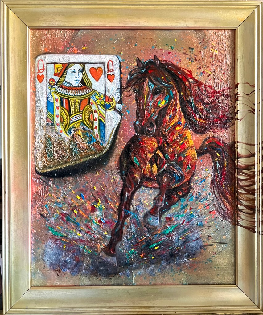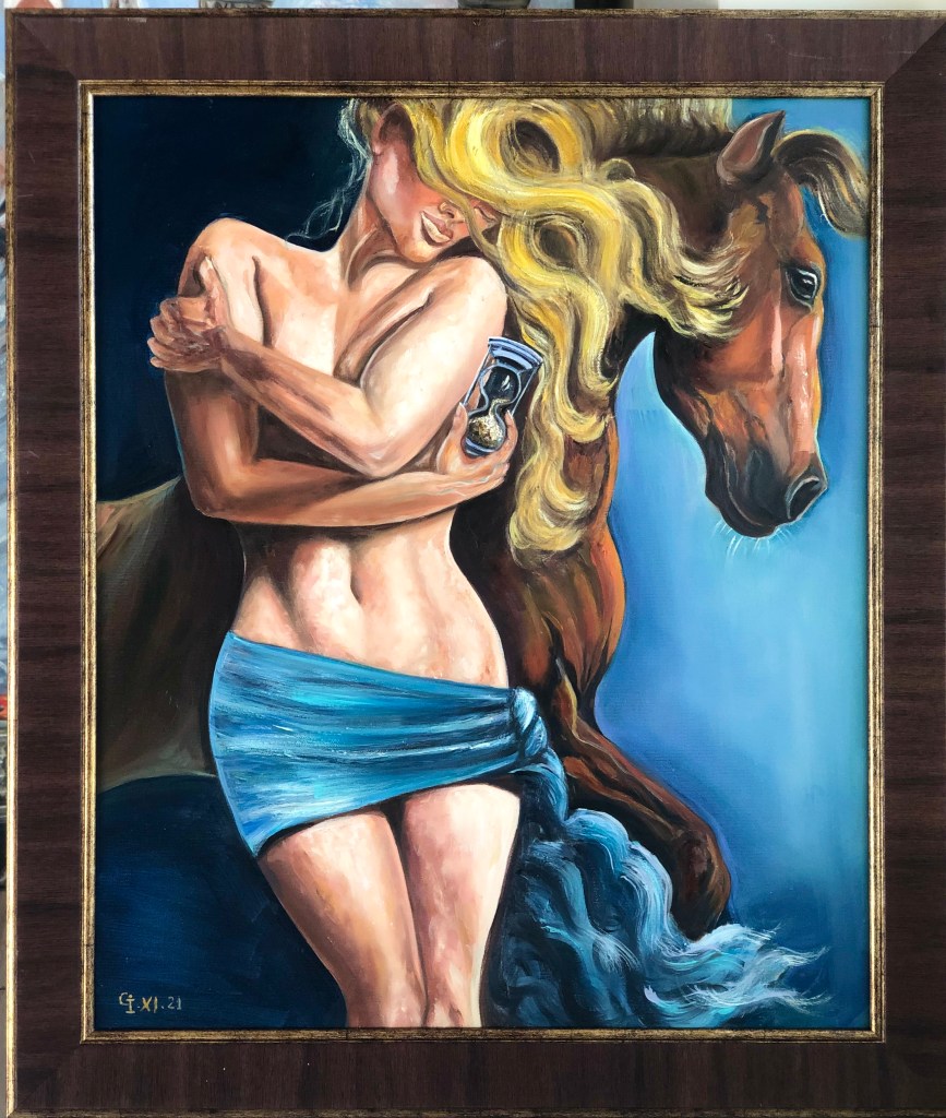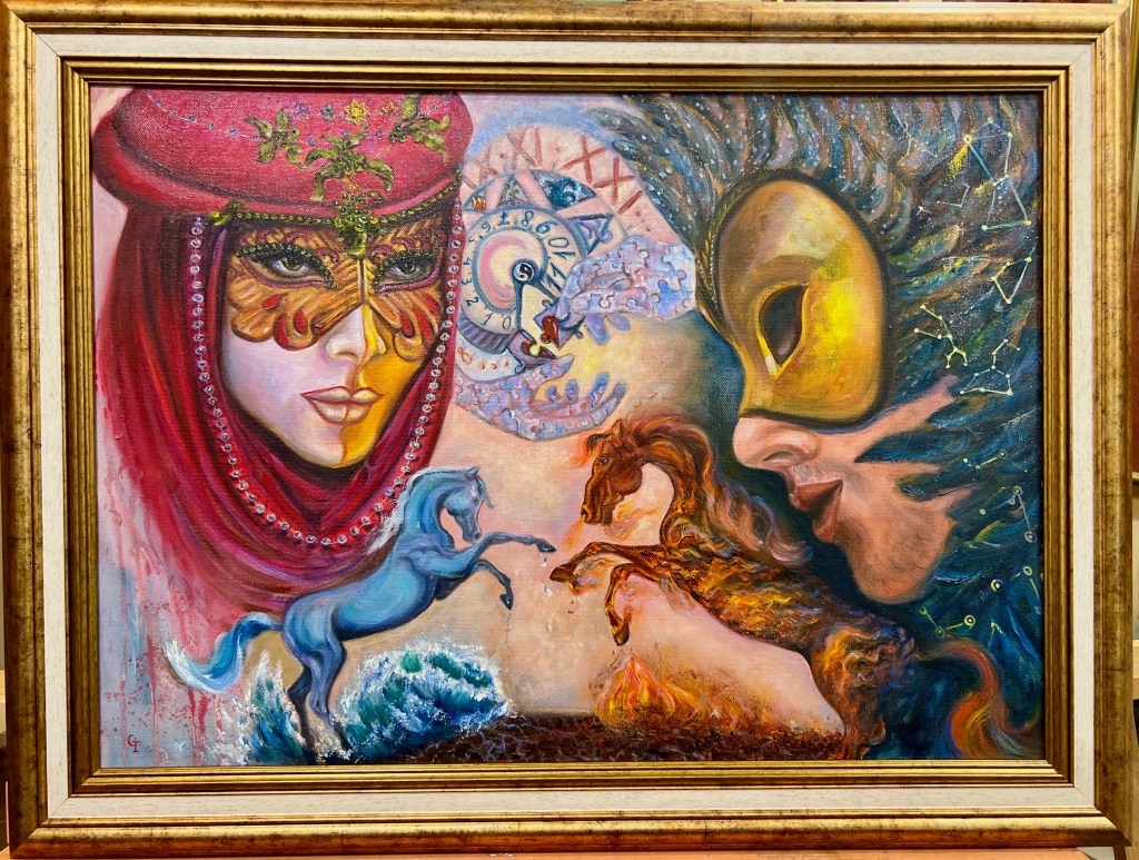 Especially popular among Tibetans – Green Tara, mother of enlightenment. Goddess of Protection from Fears and Abundance. Her mantra is: om tare tuttare ture soha. Each mantra is a “sound, syllable, word, or group of words that is considered capable of “creating transformation. If your inner self is filled with negative thoughts, then chanting the green tara mantra will replace it with calmness, fear is replaced with courage, and self-centeredness develops into a compassionate view of all beings. The vibrations of the mantra connect us to higher states of consciousness, leading us to discover deep truths about ourselves and the universe. In the painting, she is depicted “in a pose of lightness and readiness for action. While her left leg is folded in a contemplative position, her right leg is extended, ready to spring into action. In one hand the Green Tara is in the beneficence position. In the other hand bloom blue lotuses (utpalas), which symbolize purity and strength. Green Tara is usually depicted as a compassionate being, ready to descend from her lotus throne to offer comfort and protection from all the suffering we experience in the world.
