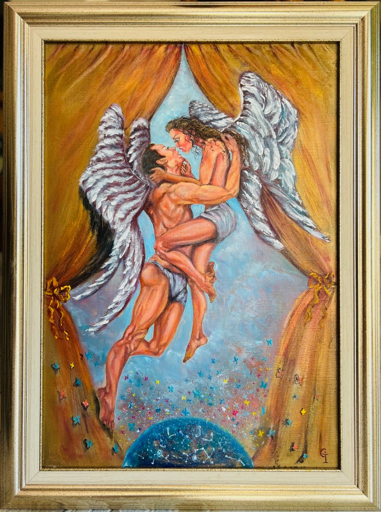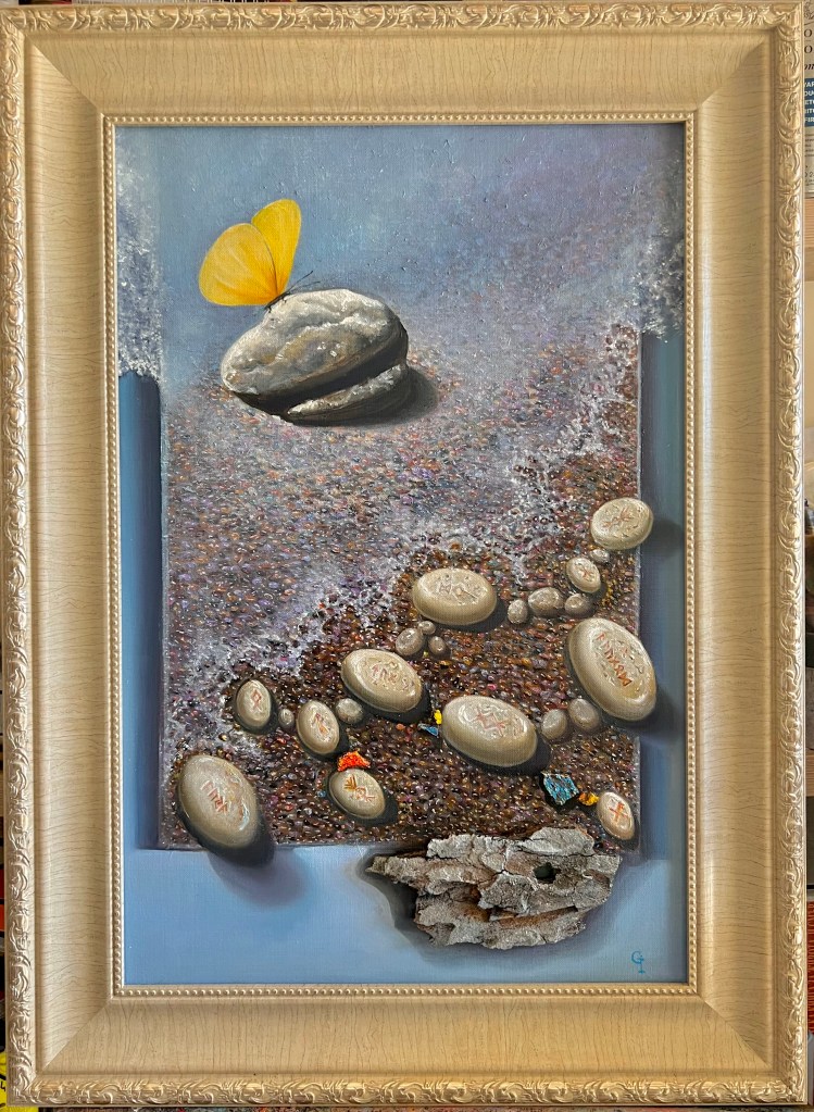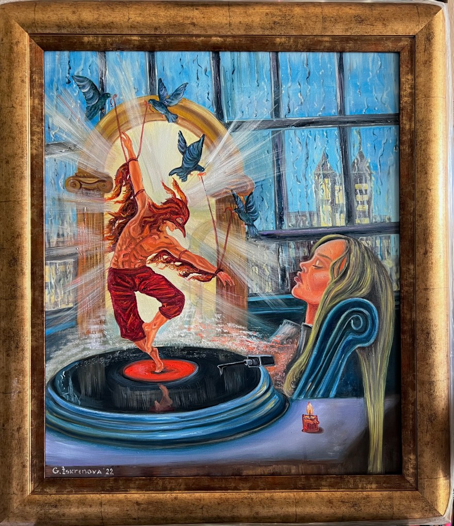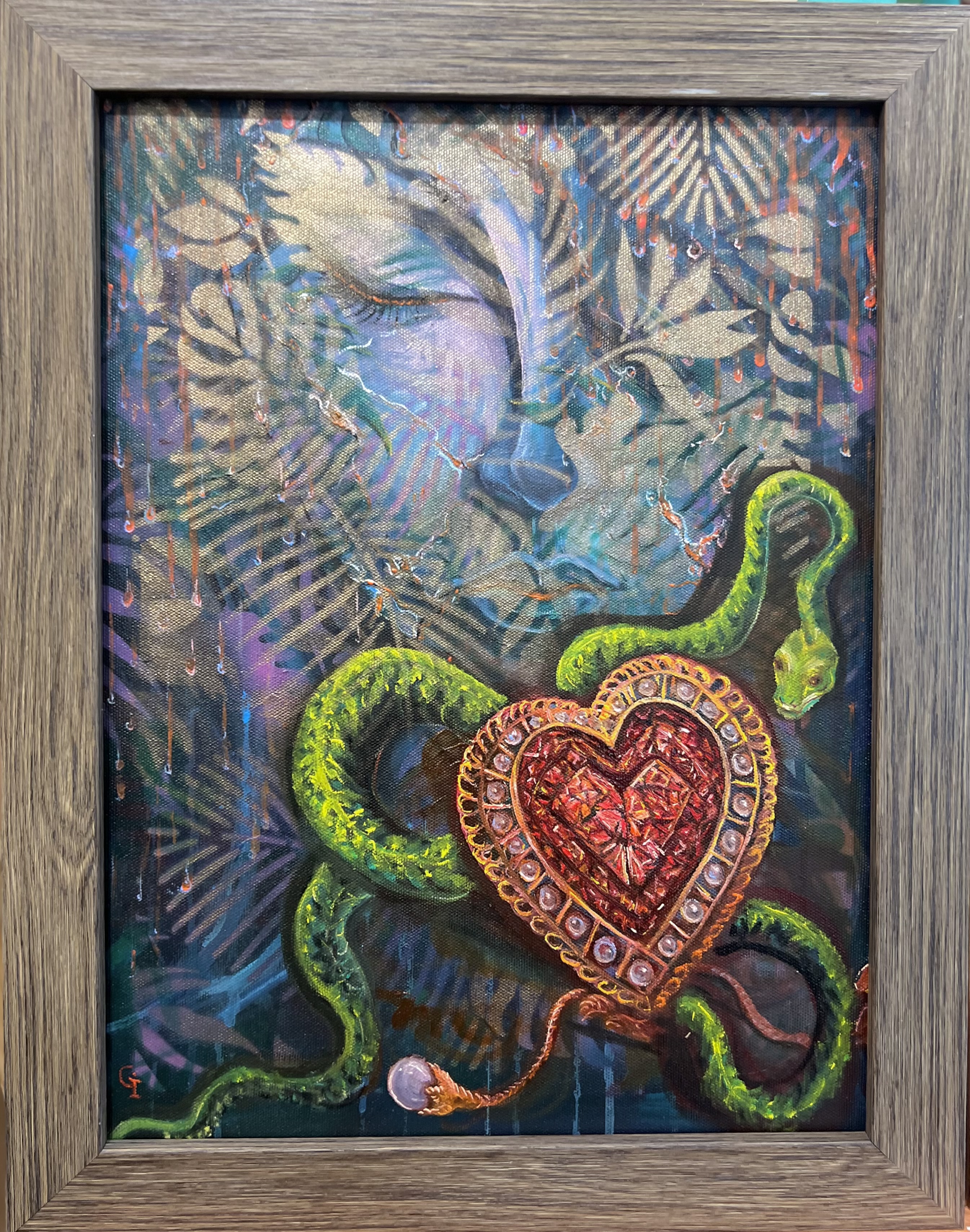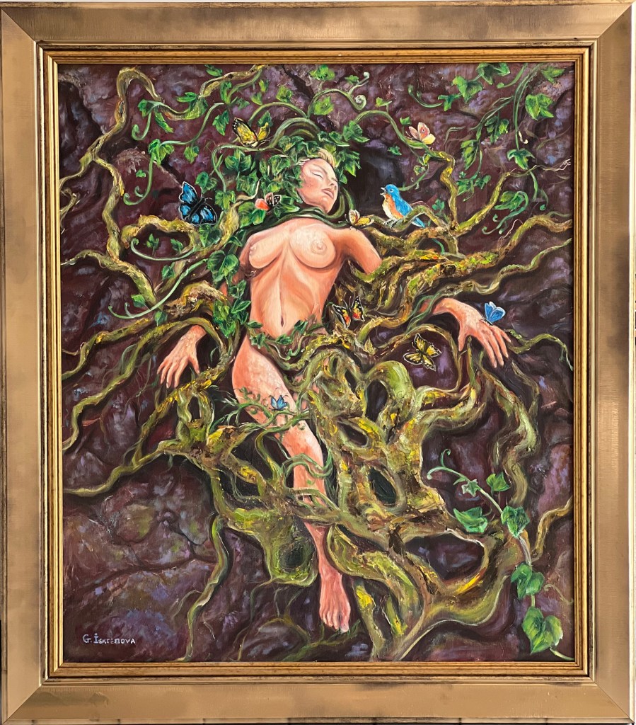 The painting is a portal between worlds — between matter and spirit, between ancient and contemporary wisdom. It invites the viewer to taste the fruit of knowledge, to follow the mystery of inner awakening, and to step into the circle of the sacred.