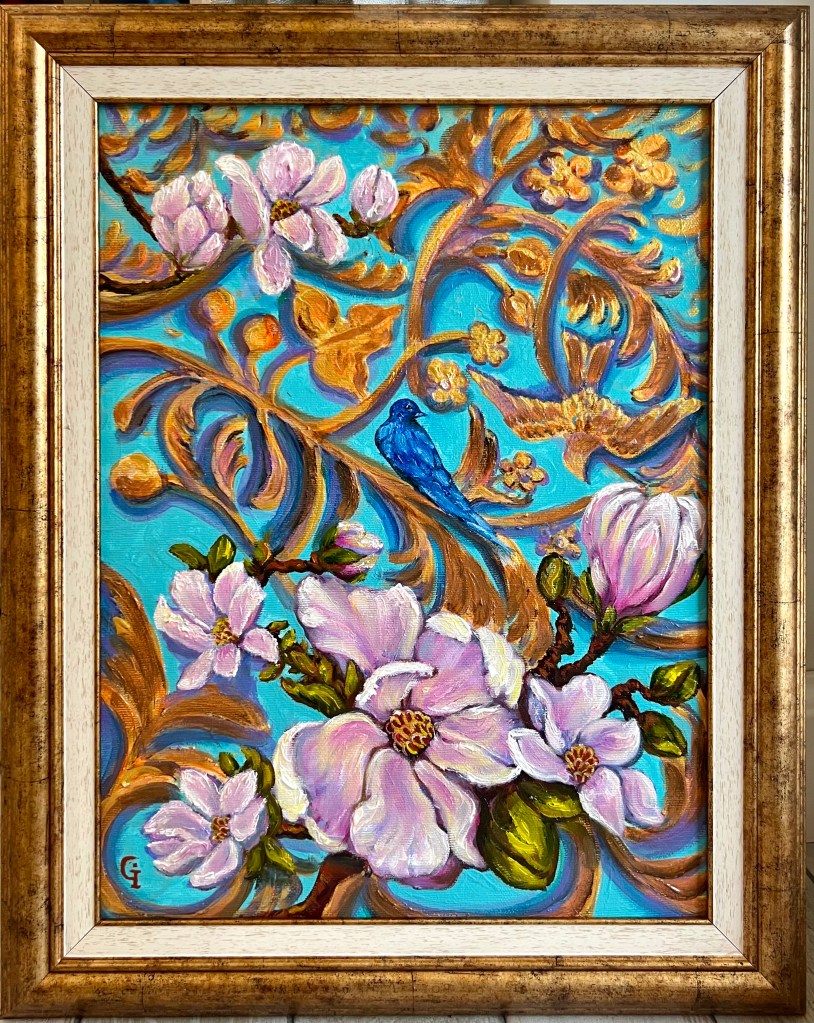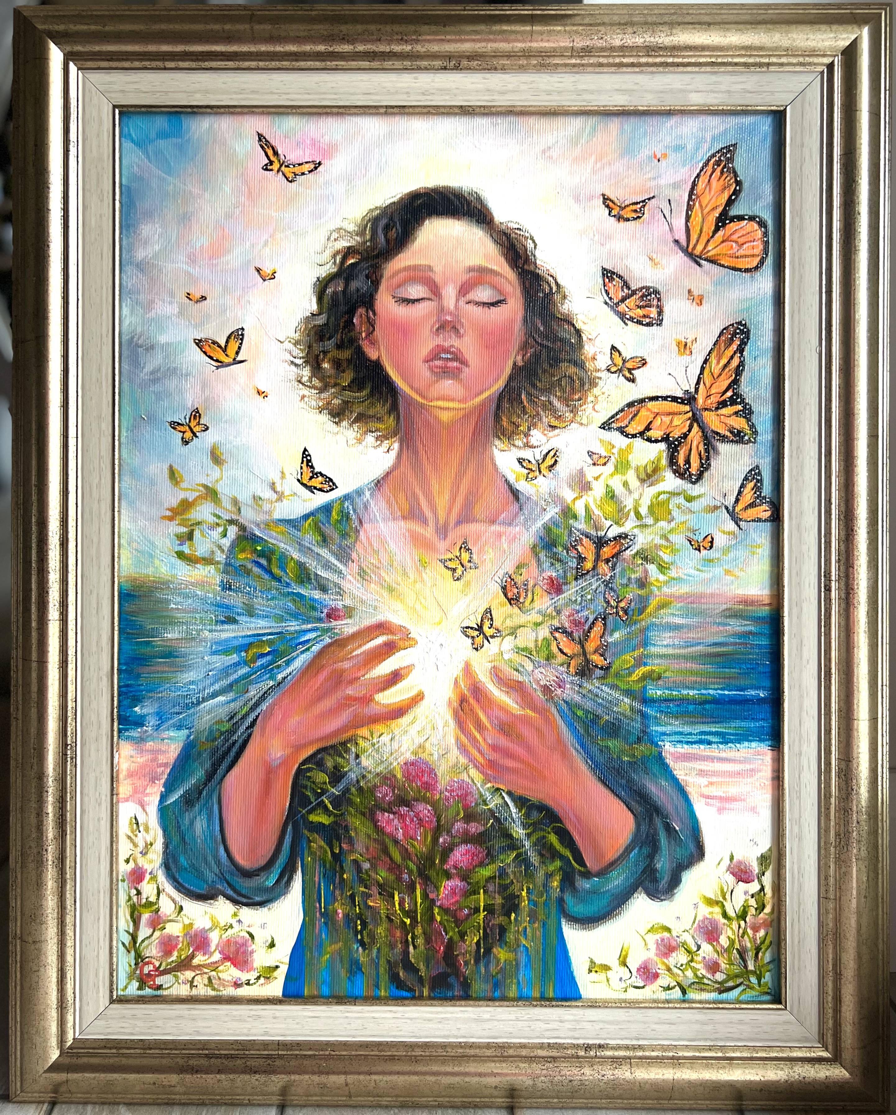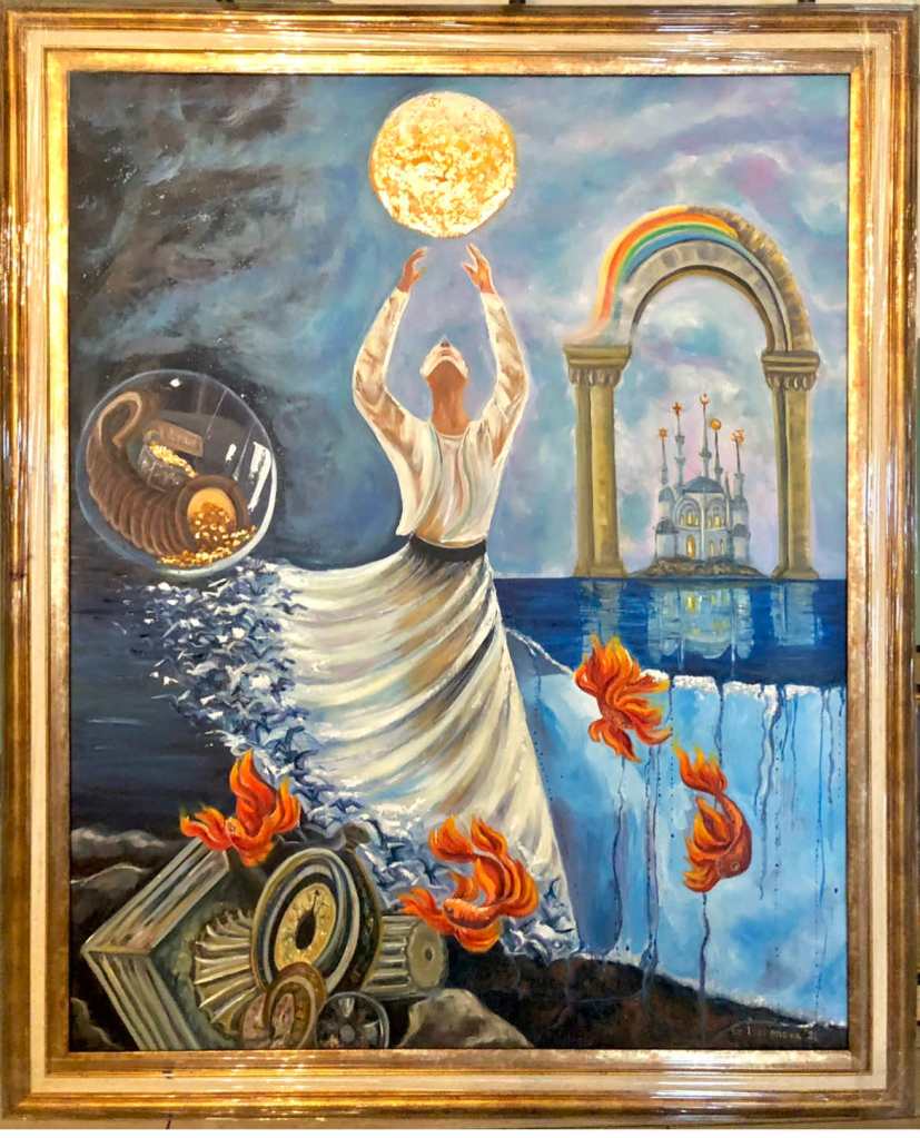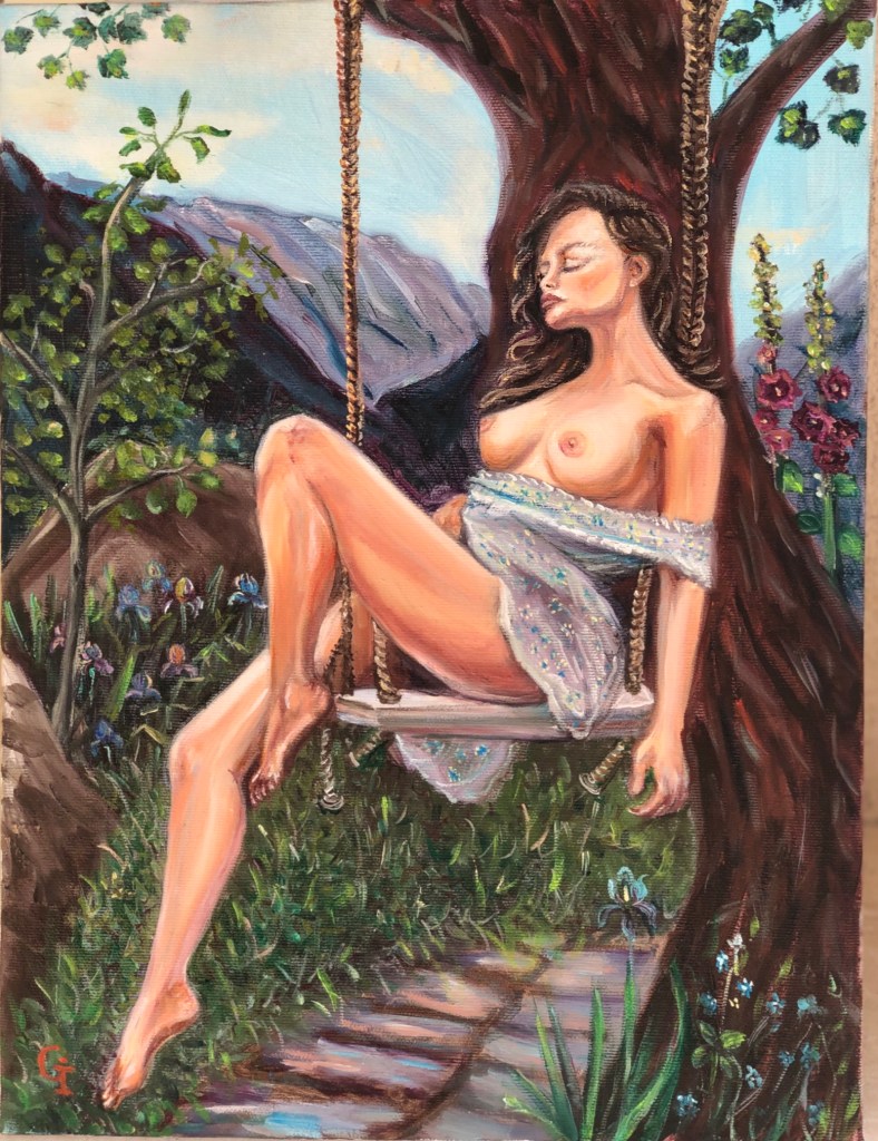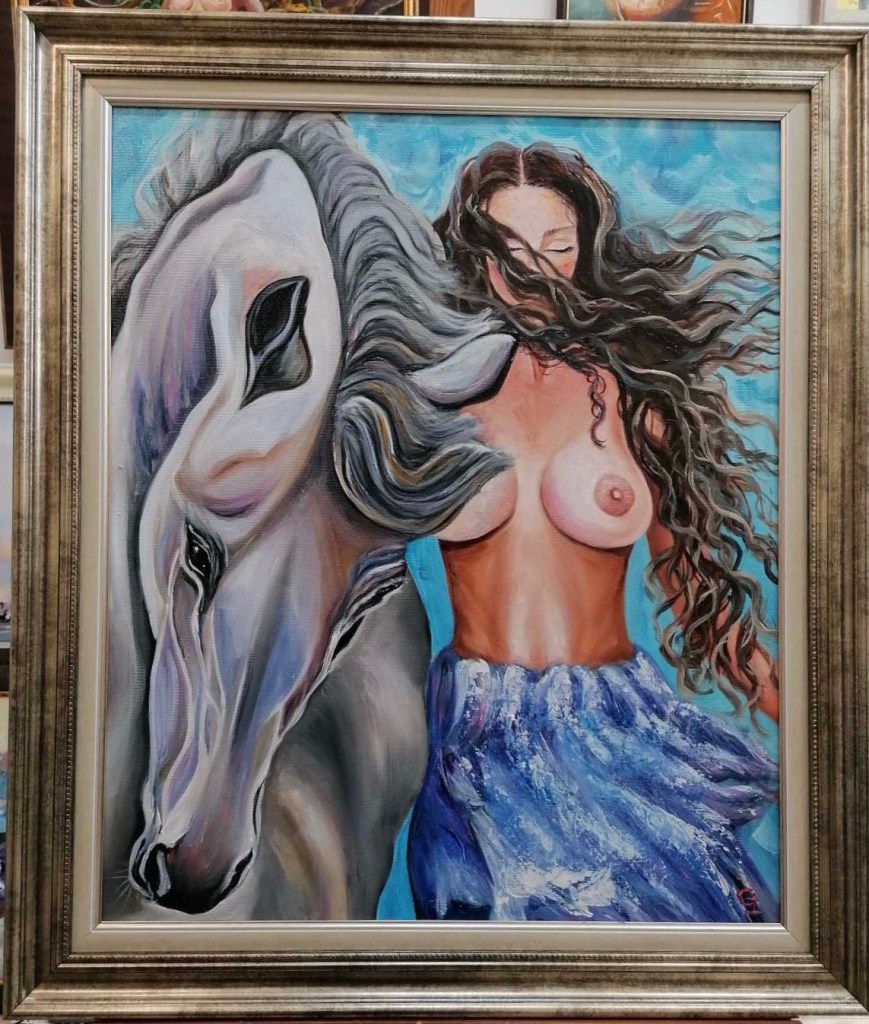 The painting is a portal between worlds — between matter and spirit, between ancient and contemporary wisdom. It invites the viewer to taste the fruit of knowledge, to follow the mystery of inner awakening, and to step into the circle of the sacred.