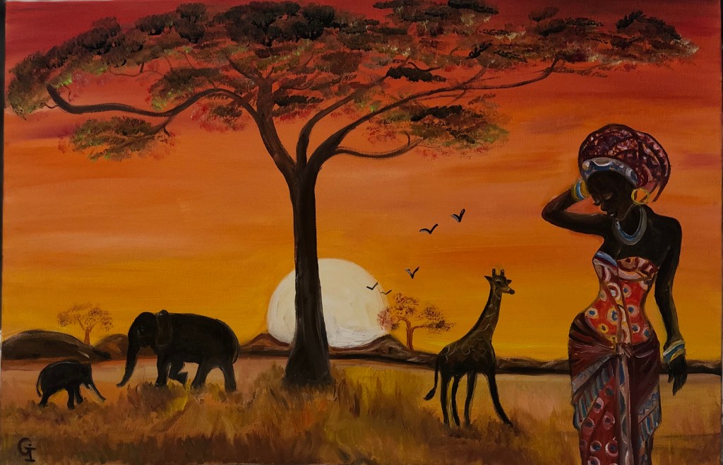 Inspired by the Afrocentric symbolism and stylistic spirit of Keith Mallett.