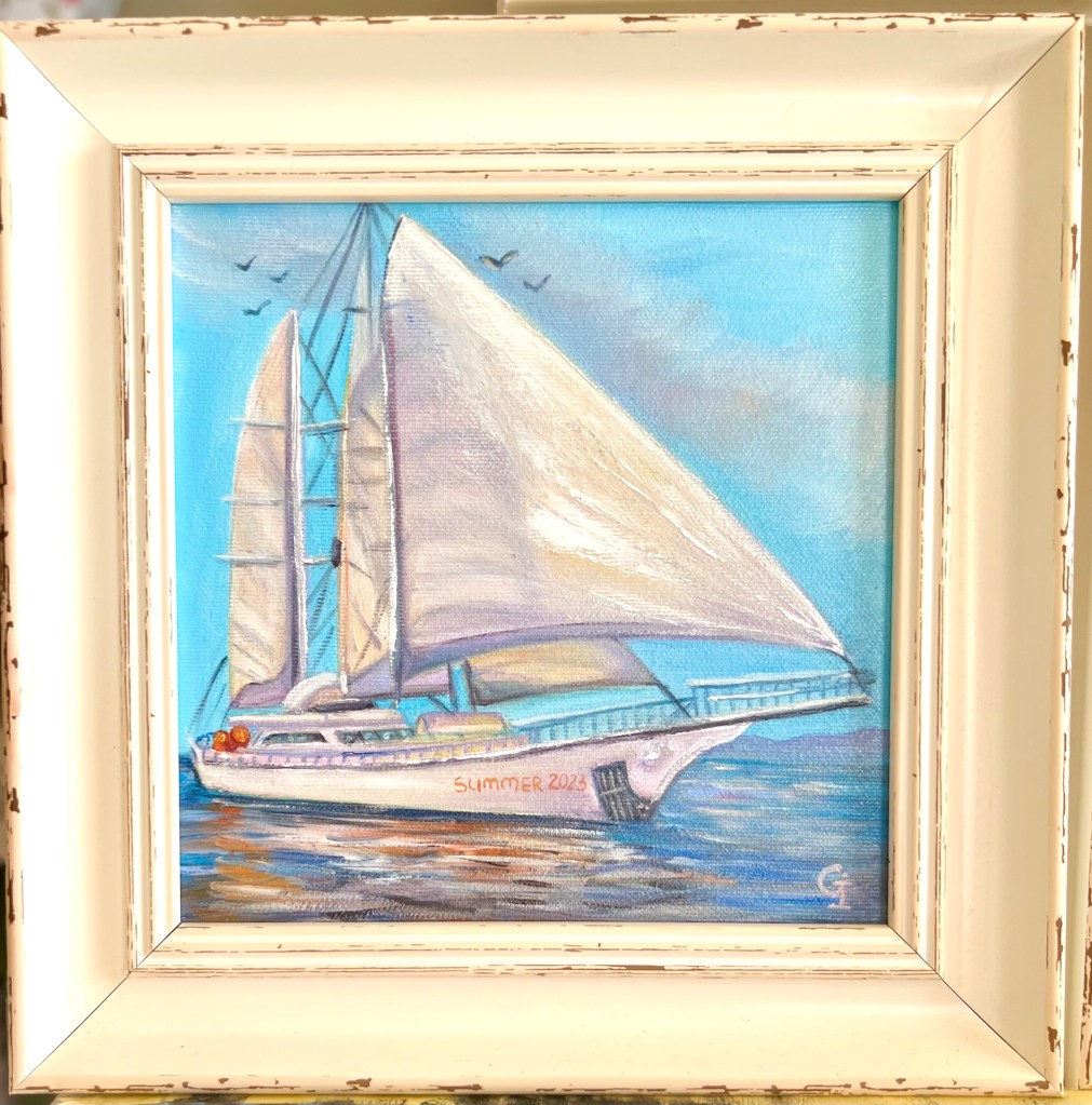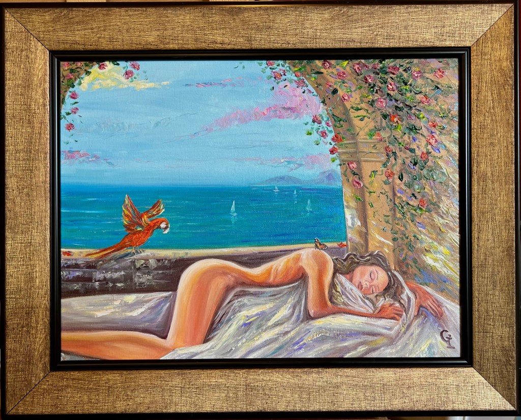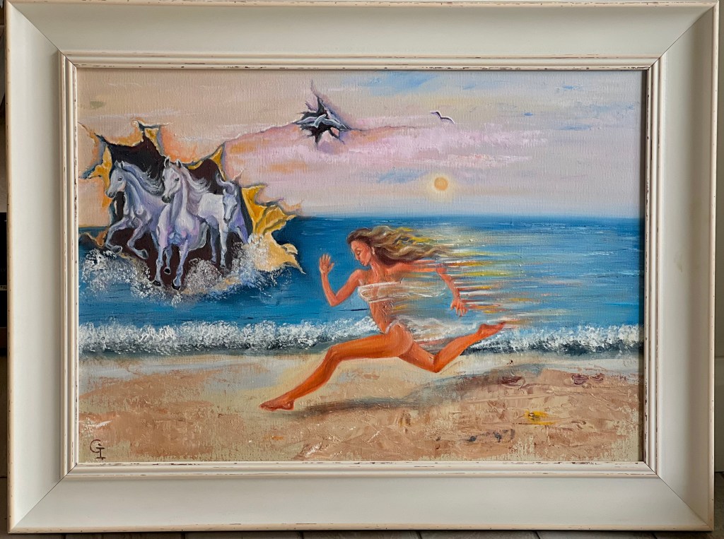 On the hottest days, this canvas brings the sensation of a refreshing breeze, salt on the lips, and the feeling that life is here and now – in the speed, the movement, the risk, and the lightness of flight, all of which elevate us toward a bolder and renewed version of ourselves.