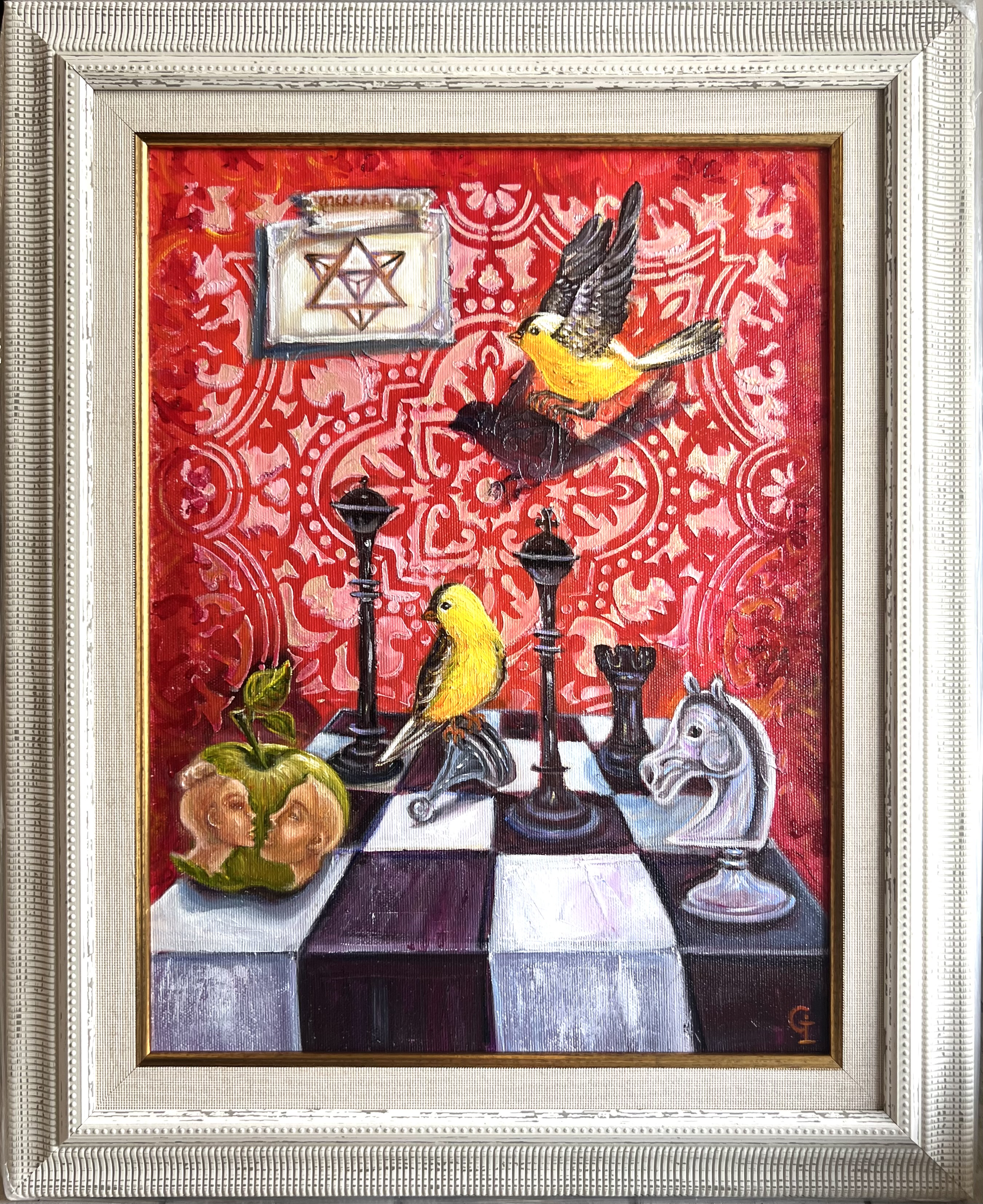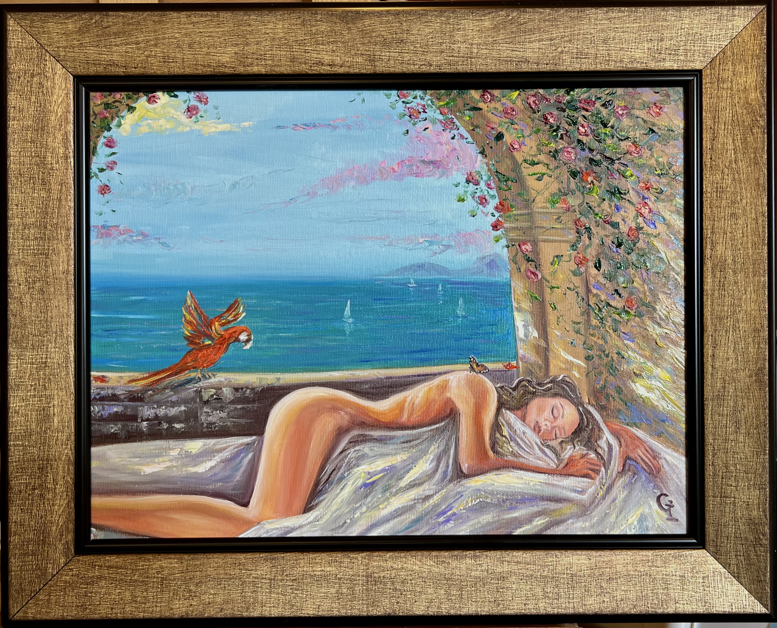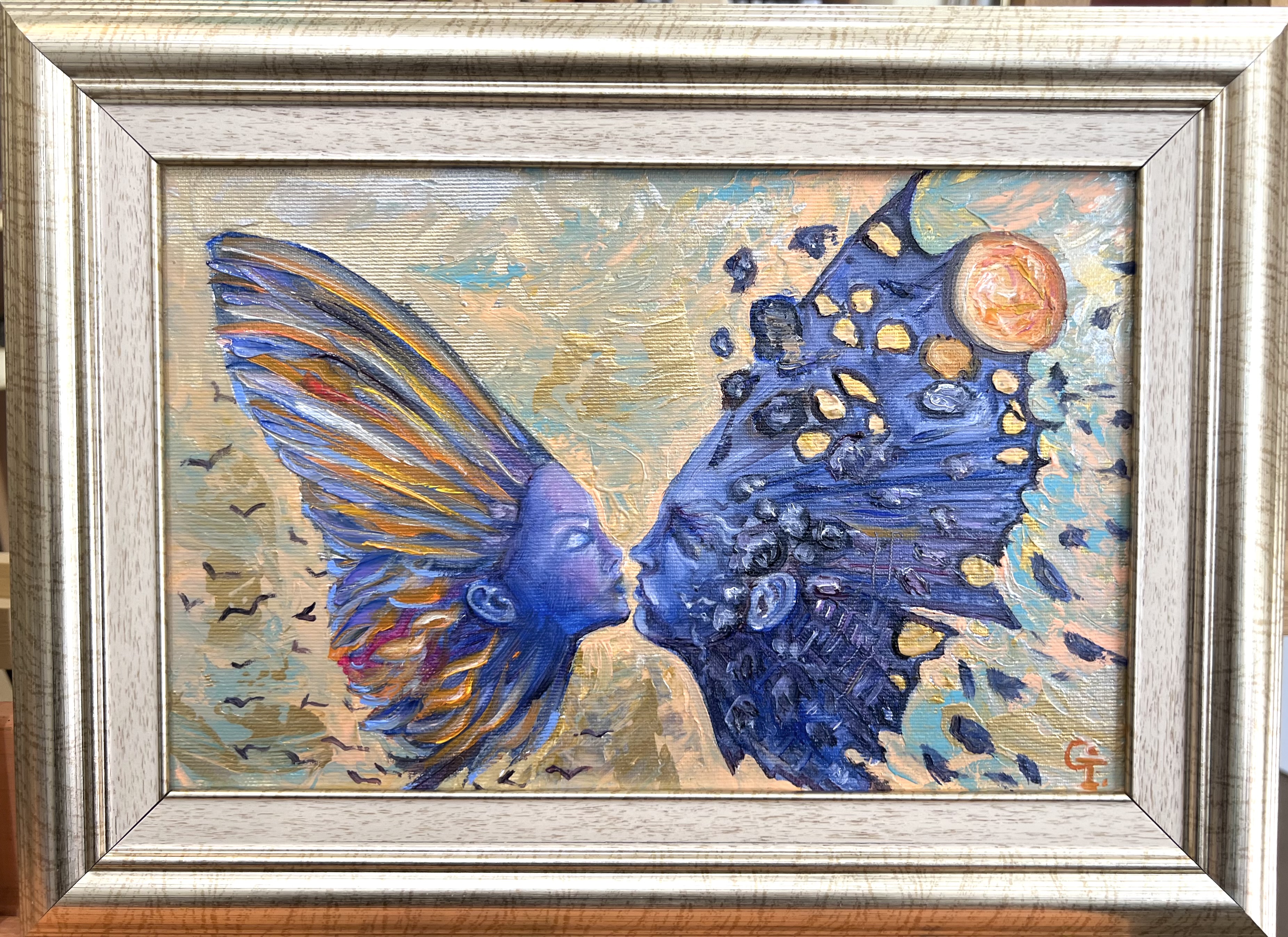 ‘Without Cinderella’ is a 40/30 cm oil on canvas painting. The second shoe is unconsciously the soulmate in Cinderella’s story, which is why its possessor is sought after and the only one among many. Romeo becomes Casanova as a result of his life without a soul mate.